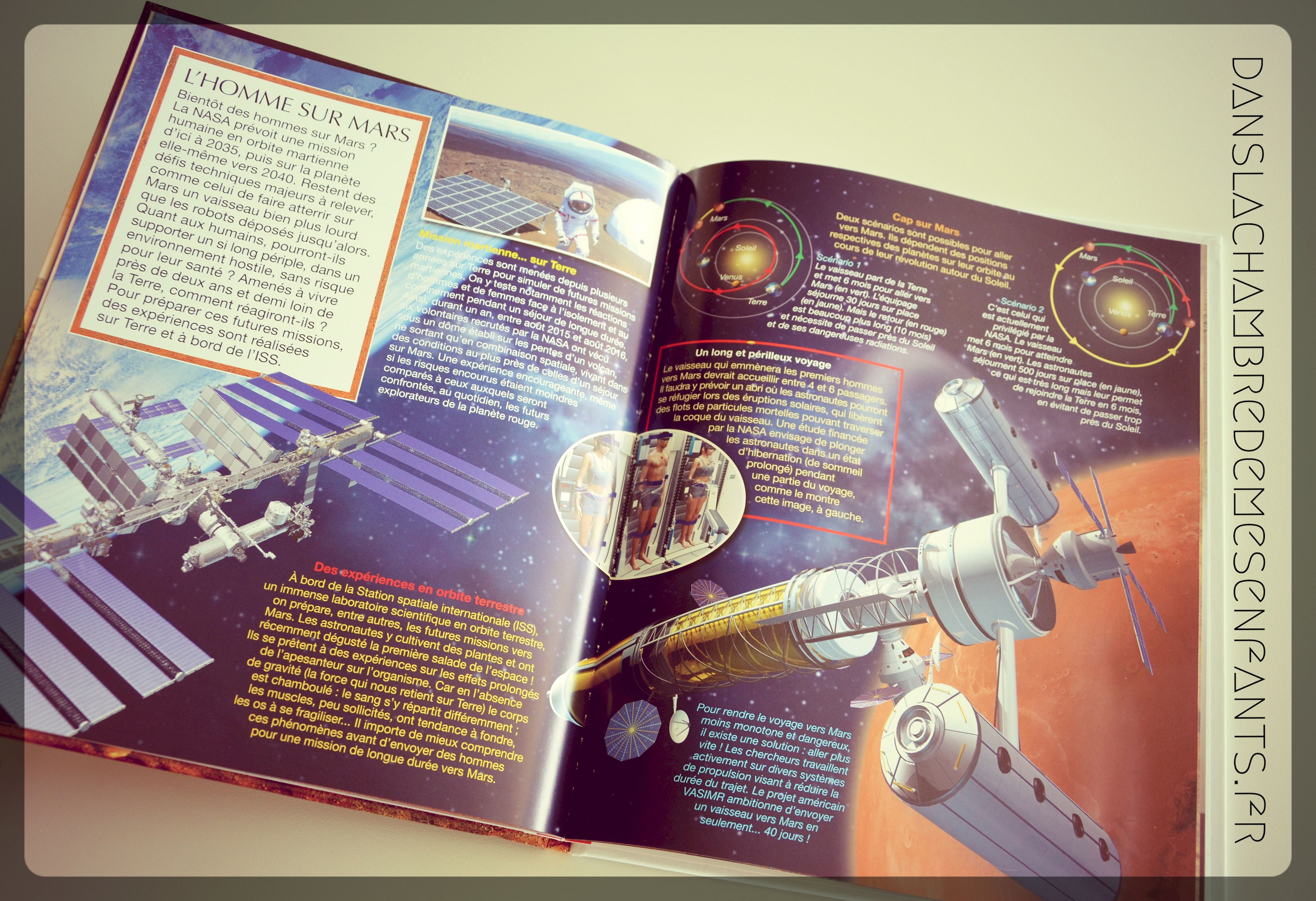 Après le livre « Les planètes », voici un nouveau documentaire encore plus précis puisque consacré à Mars pour des lecteurs à partir de 6 ans. On y retrouve un ouvrage documenté par de nombreuses images (photos et dessins) et des commentaires s’articulant autour de :