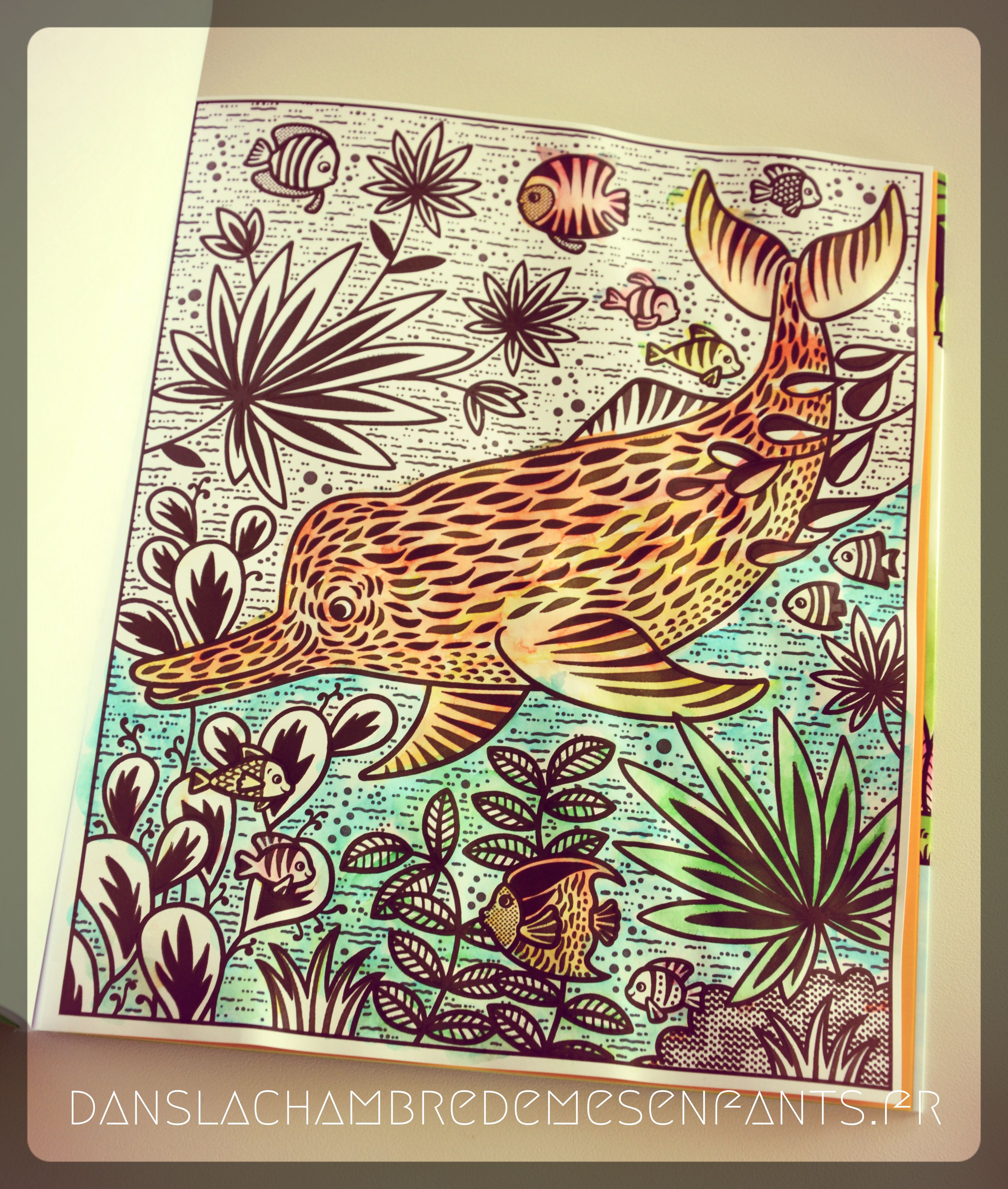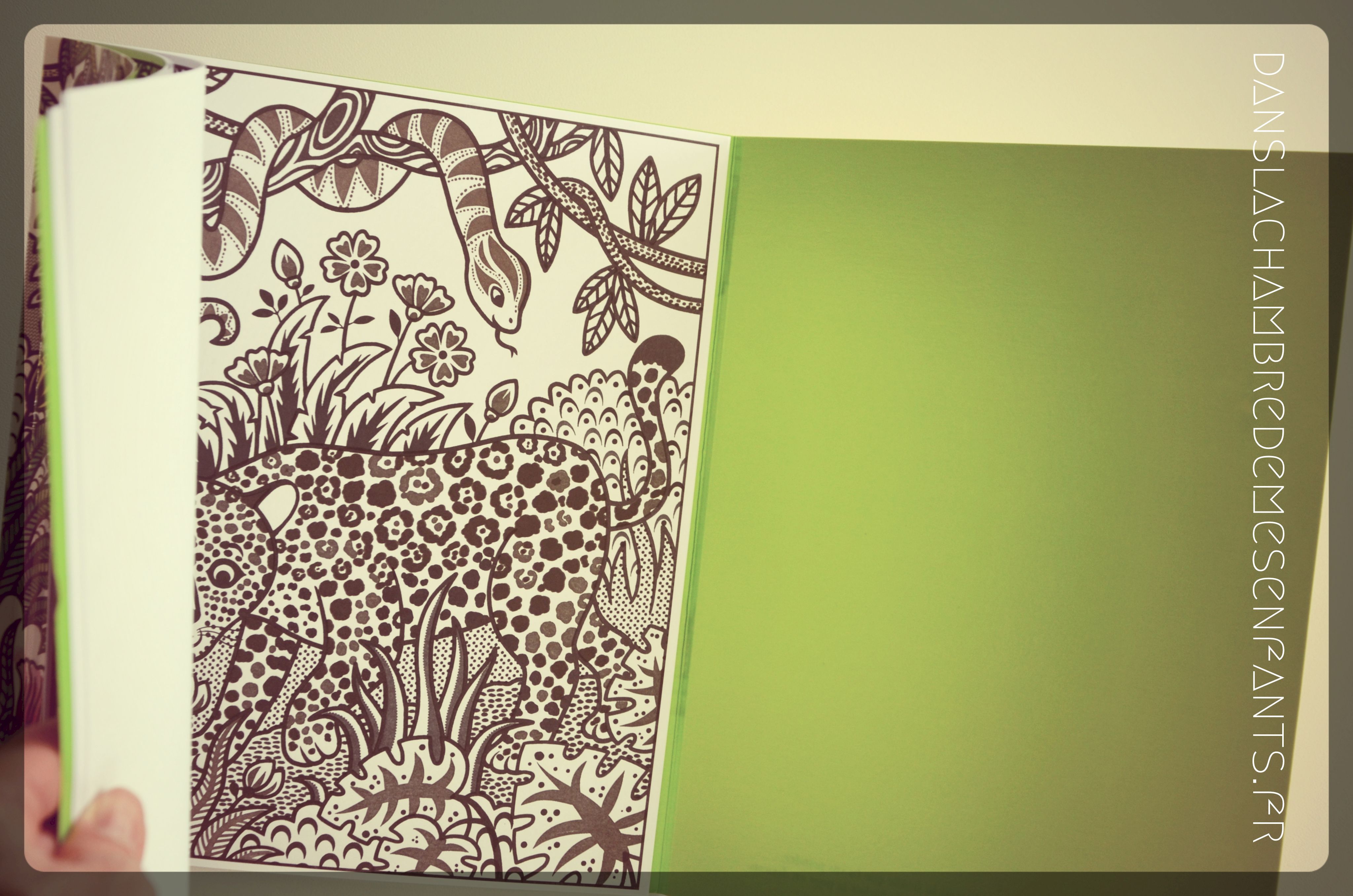C’est une activité pratique qui permet un gain d’équipement, qui apporte de la simplicité autour d’une activité plus propre que la peinture classique, format qui est particulièrement intéressant en vacances. Les illustrations suivent la thématique de la jungle avec des scènes d’animaux se rafraîchissant, d’envol d’oiseaux exotiques, d’une nuée de papillons, d’un grand caméléon…