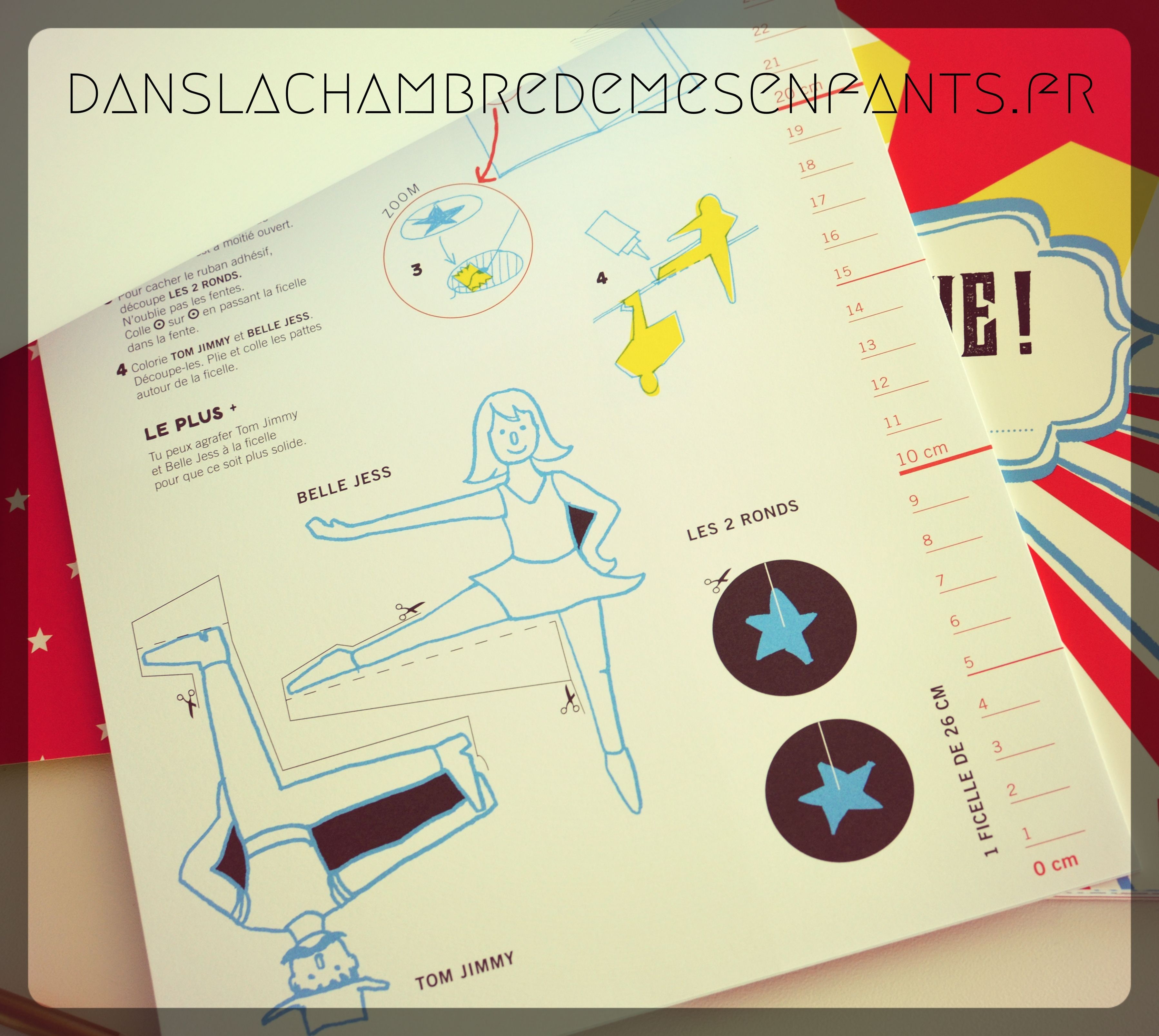 La réalisation d’un livre pop-up est rendu accessible aux enfants dès 7 ans grâce à un format simplifié et pratique. En effet, le niveau est à peine plus élevé que celui du titre précédent car il est aussi question de montages avec une ficelle à mesurer préalablement (non fournie) à l’aide de la règle dessinée en marge (montage du chapiteau et fil des funambules) ou encore du découpage de formes particulières telles qu’une spirale, les détails du contour de personnages…