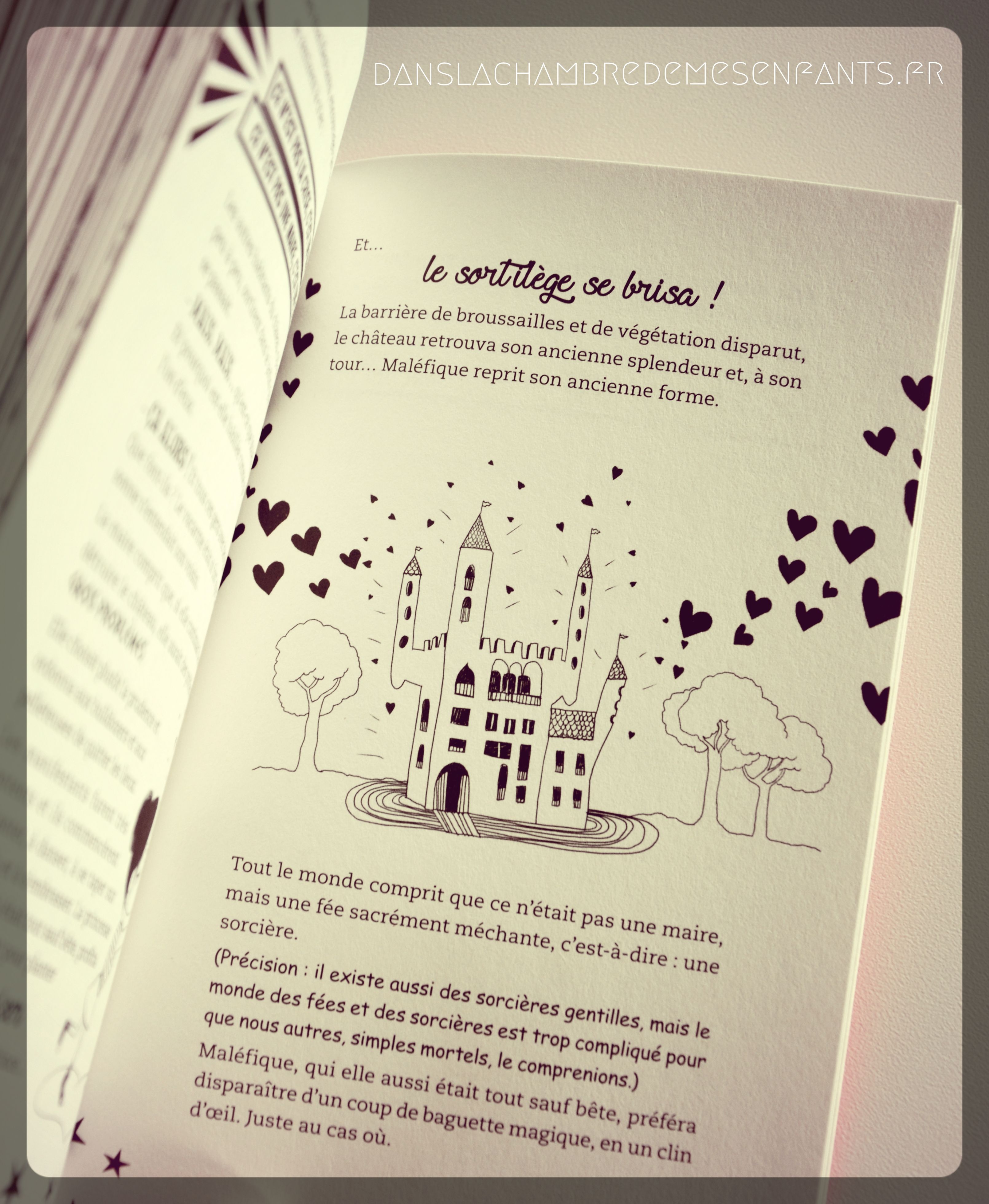 Si le genre est assez superficiel c’est pour alléger le ton de la lecture de contes, grâce à l’humour dans un style assumé notamment au travers d’illustrations qui décorent de façon un peu désordonnée le roman tout comme les différentes polices, en noir pour contraster avec le rose fluo de la couverture. La fin de chaque histoire renverse la tendance avec notamment « C’est ainsi que les trois princesses, Sol, Luna et Estella, vécurent heureuses et eurent beaucoup de livres. Sol épousa le prince SUPER-SUPER, Estella devint archéologue et Luna, astronaute. Sol se mit à écrire et décida de RACONTER DES CONTES FACON Princesses Power ! ». Ah voilà, on comprend mieux tout de suite ! Le livre se présente très bien tout seul en fait !