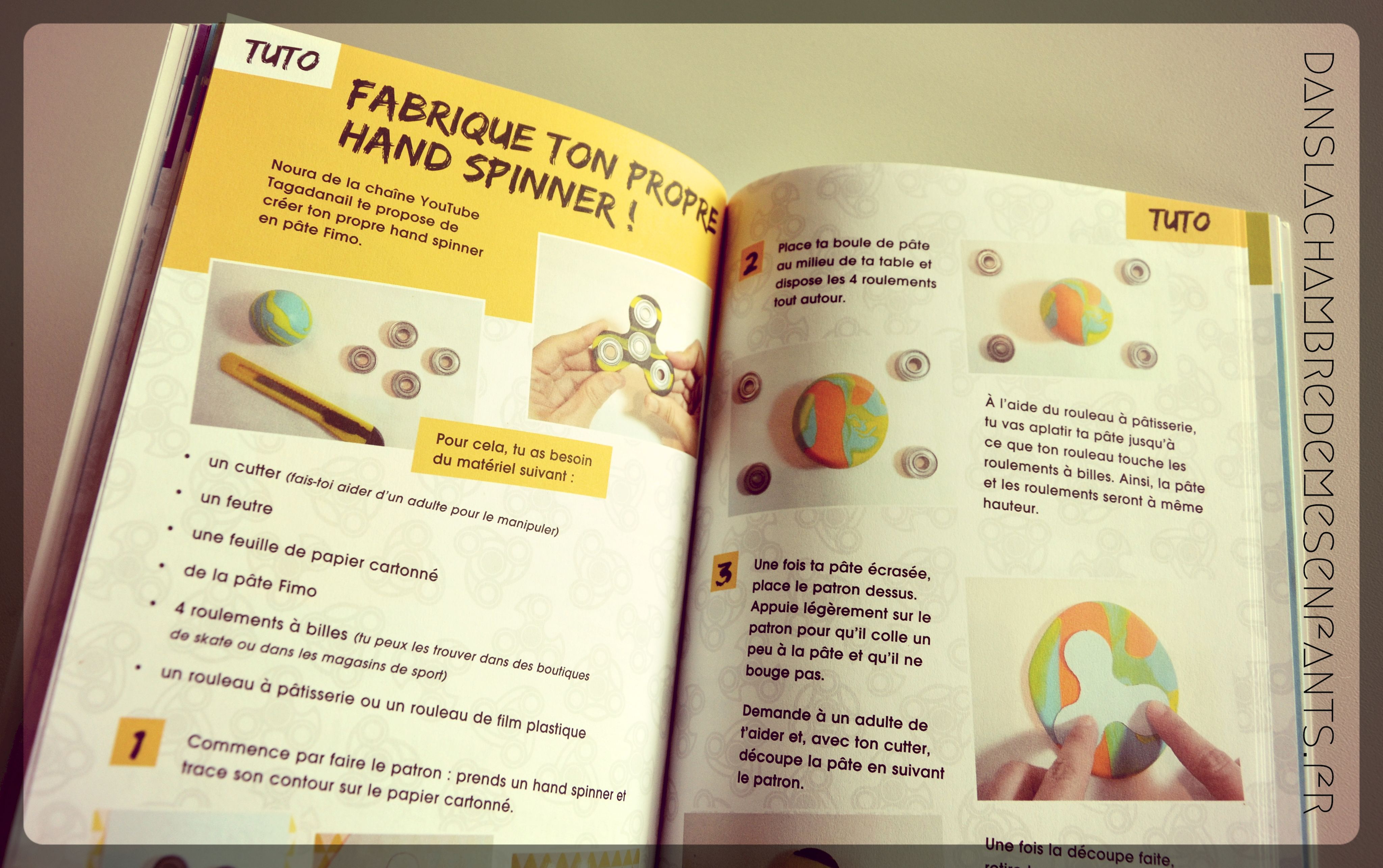 - Tutos : Fabrique ton hand spinner à partir de pâte Fimo, Customise ton hand spinner avec de la feutrine, en photos et en vidéo à partir d’un flashcode,