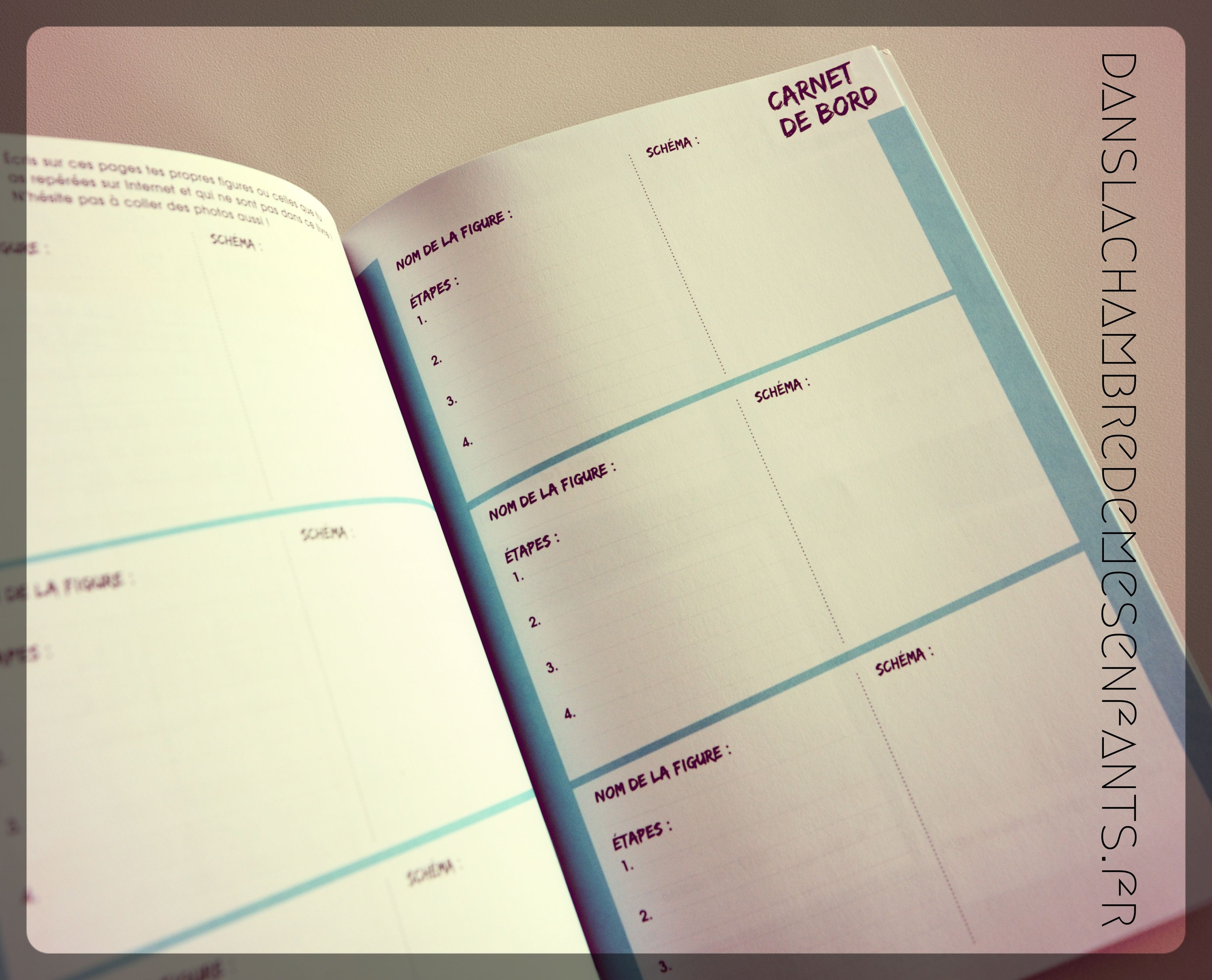 - Carnet de bord à compléter : Nom de la figure avec étapes et schéma, photos datée de figures réalisées, 4 défis avec tableau pour suivre les challenges relevés, et 3 pages en libre expression et coloriage d’un mandala spinner.