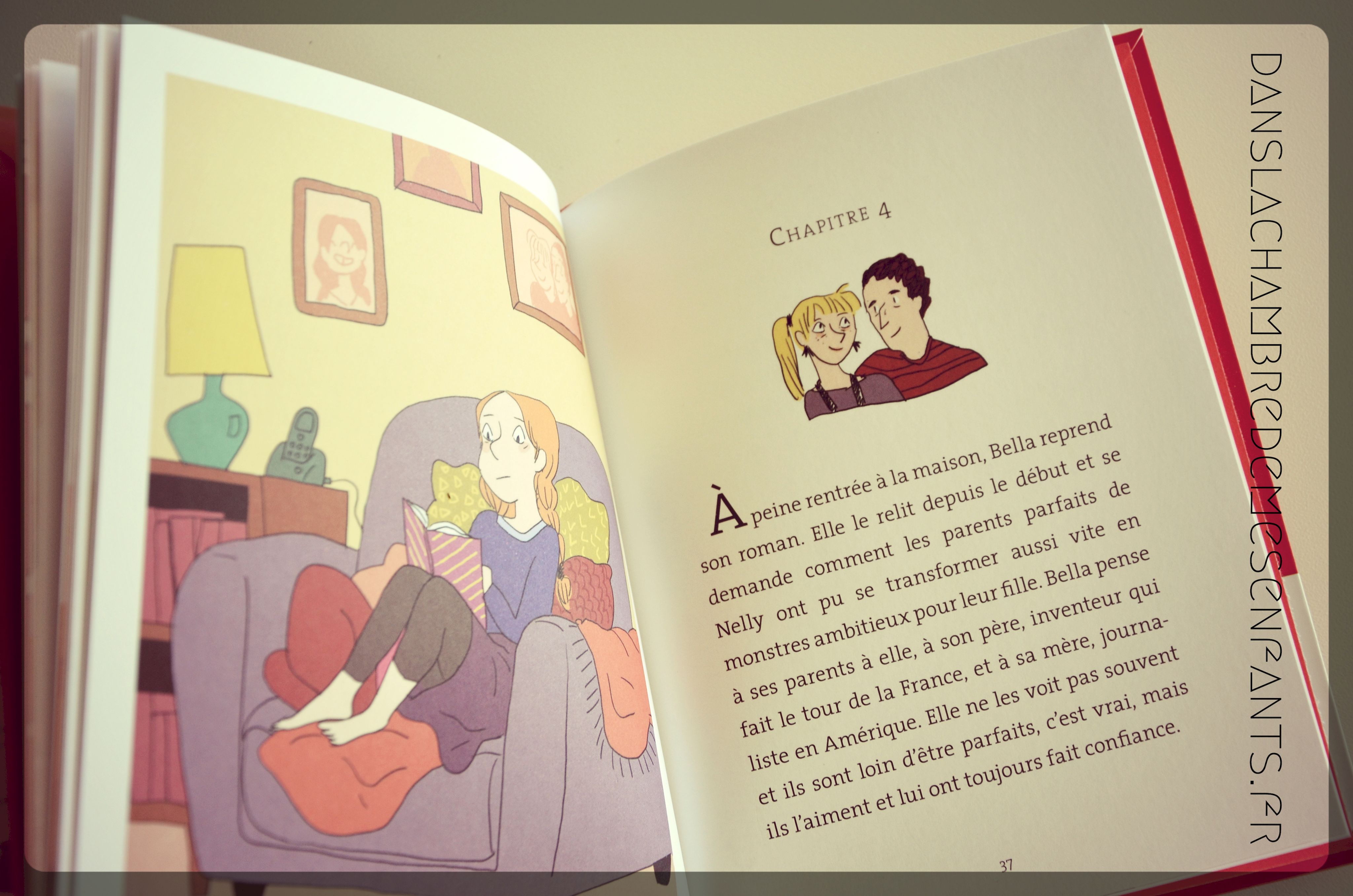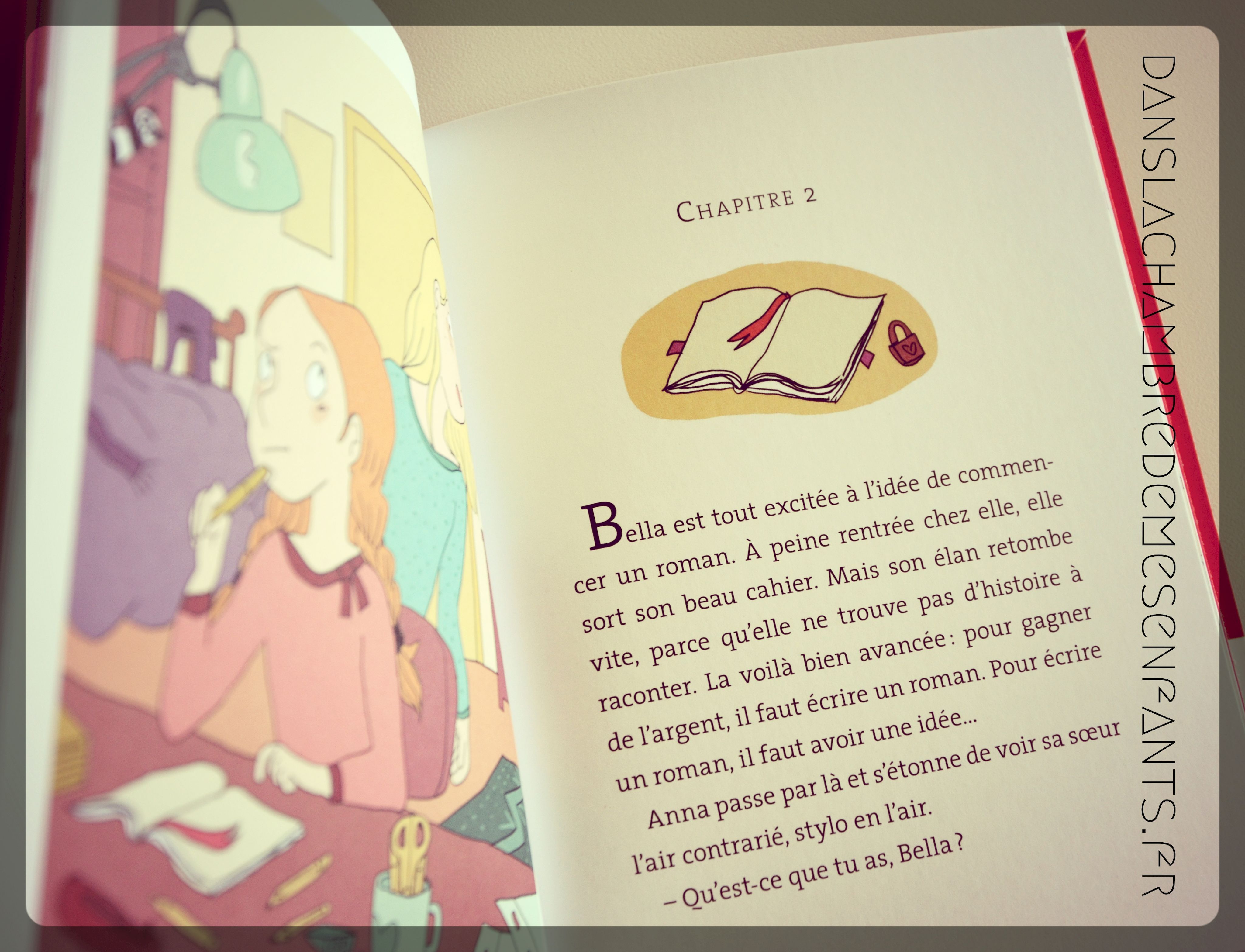 Dans le second titre, Bella veut aider son baby-sitter a gagner de l’argent pour ouvrir son restaurant. Ce qu’elle sait mieux faire c’est encore d’écrire alors la voilà partie dans l’écriture d’un roman. Elle ne sait pas encore comment s’y prendre mais son entourage est trop agité pour y arriver. Alors, elle imagine une vie opposée, une vie rêvée, et voilà un roman qui a de quoi l’étonner la première…