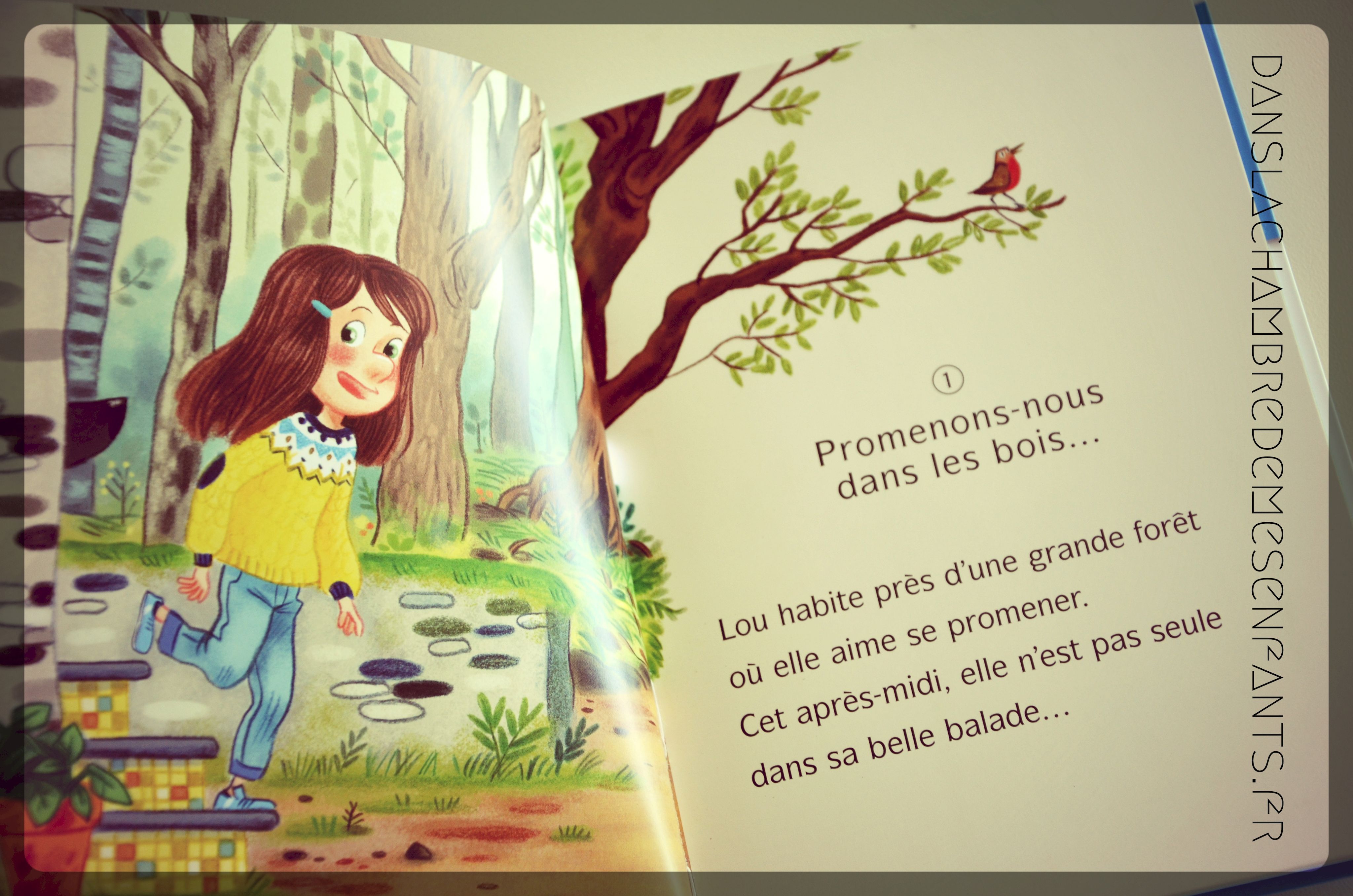 Lors d’une balade en forêt avec son chien Réglisse, Lou est intriguée par des empreintes qui la mènent jusqu’à un faon. Son ami Lenny la rejoint et ils s’occupent du jeune animal tout en recherchant sa mère. C’est aussi l’occasion de découvrir d’autres animaux tels qu’un écureuil, un hérisson… d’autant plus que Lou aime leur donner des prénoms : ici, Fanfan et Brigitte (la biche ! 🙂 ).