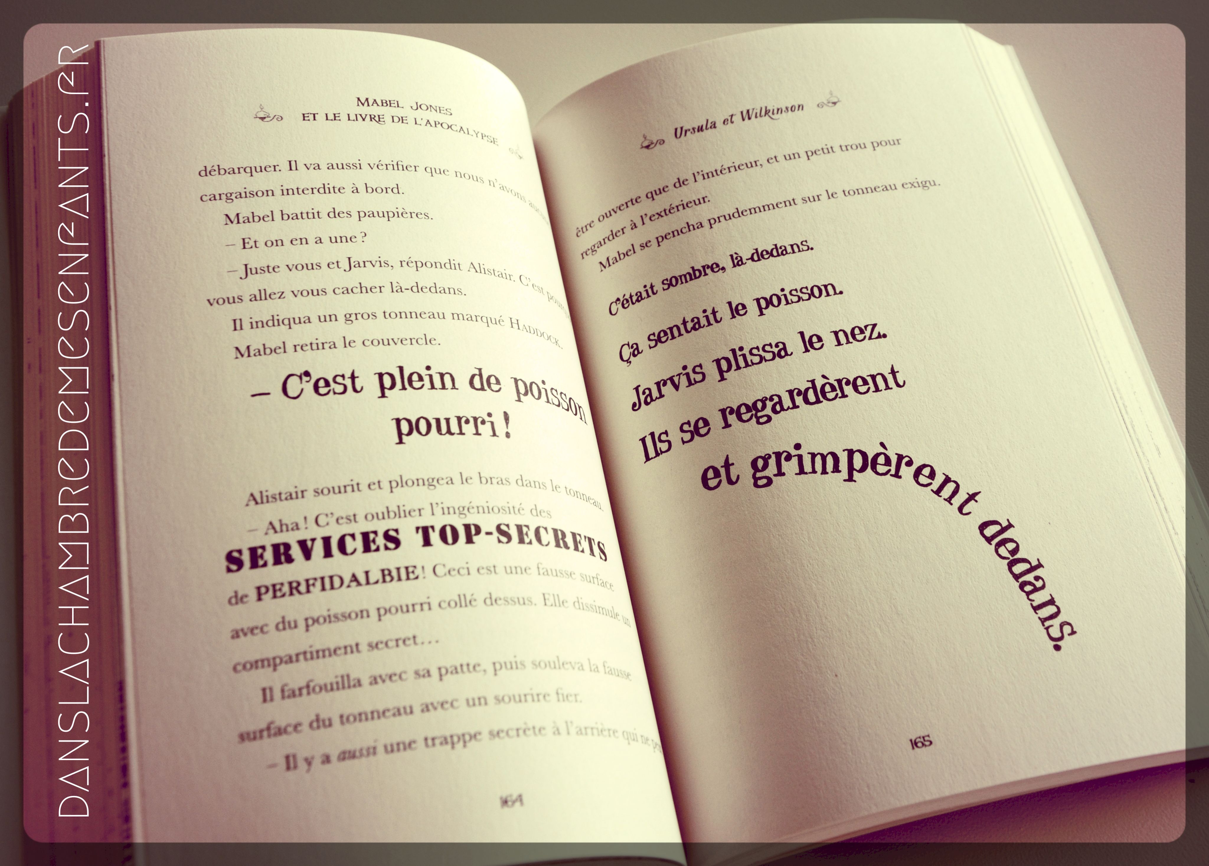 Côté histoire, c’est une présentation dans un style direct, plein de spontanéité et d’humour : « […] si Mabel Jones parvient à comprendre ce qui a causé la perte de l’espèce houuu-maine, alors peut-être – je dis bien peut-être – pourra-t-elle empêcher la catastrophe… Arrêtez-vous une seconde. Respirez à fond. Prenez un biscuit et pensez un peu à notre improbable héroïne. Une simple enfant. Avec des cannes de serin et des épaules maigrichonnes […] ». Il va falloir qu’elle se rende dans la dangereuse ville d’Ottom pour retrouver le secret qui éviterait un terrible destin, dans le livre de l’apocalypse. Mais le grand méchant, un hippopotame nommé le Grand Zozol y règne.