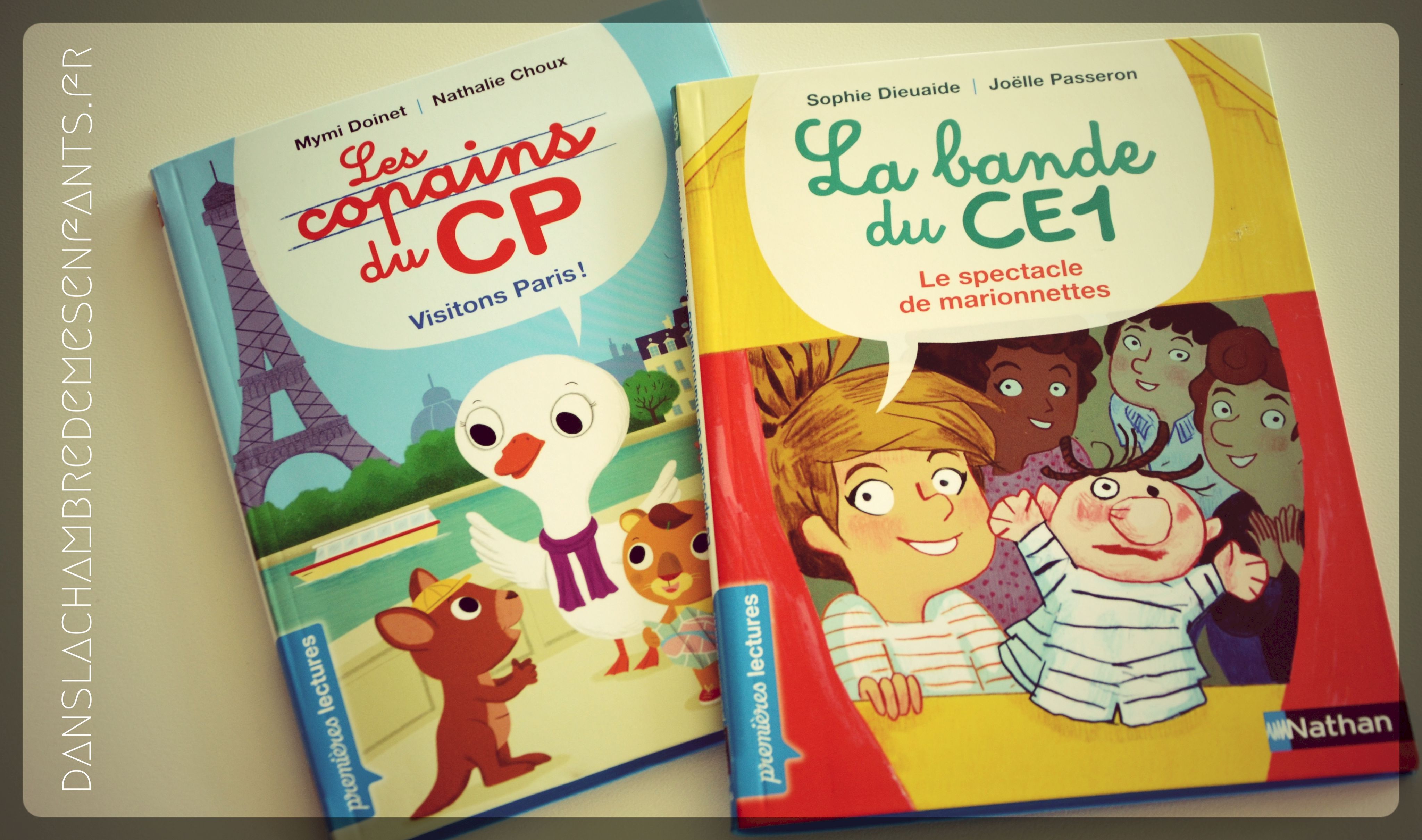 Editions Nathan - prix conseillé : 5,60 € /livre - 32 pages - format : 14 x 18,5 cm Les copains du CP - Auteure : Mymi Doinet - Illustratrice : Nathalie Choux La bande du CE1 - Auteure : Sophie Dieuaide - Illustratrice : Joëlle Passeron