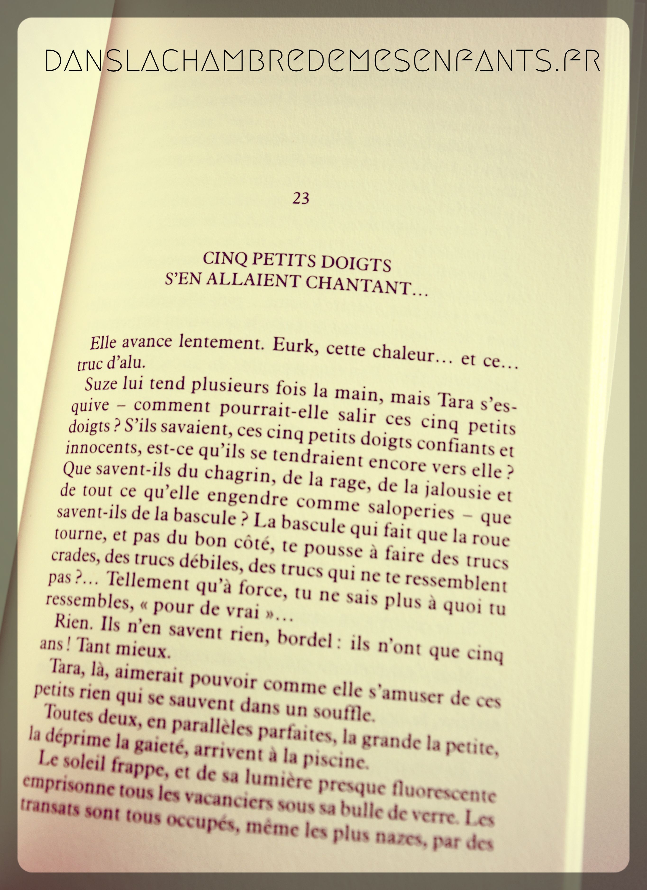 Personnellement, l’écriture m’a souvent parue trop chargée de détails, même si je reconnais que ceux-ci sont bien choisis et permettent de se familiariser avec cet environnement si connu de Tara. Le langage est parfois direct voire cru et osé l’âge de l’adolescence… Ce roman n’en est pas moins intéressant et la proximité avec les personnages est réussie. Pour la suite, je crois qu’en matière de lecture, c’est vraiment une question d’affinité.
