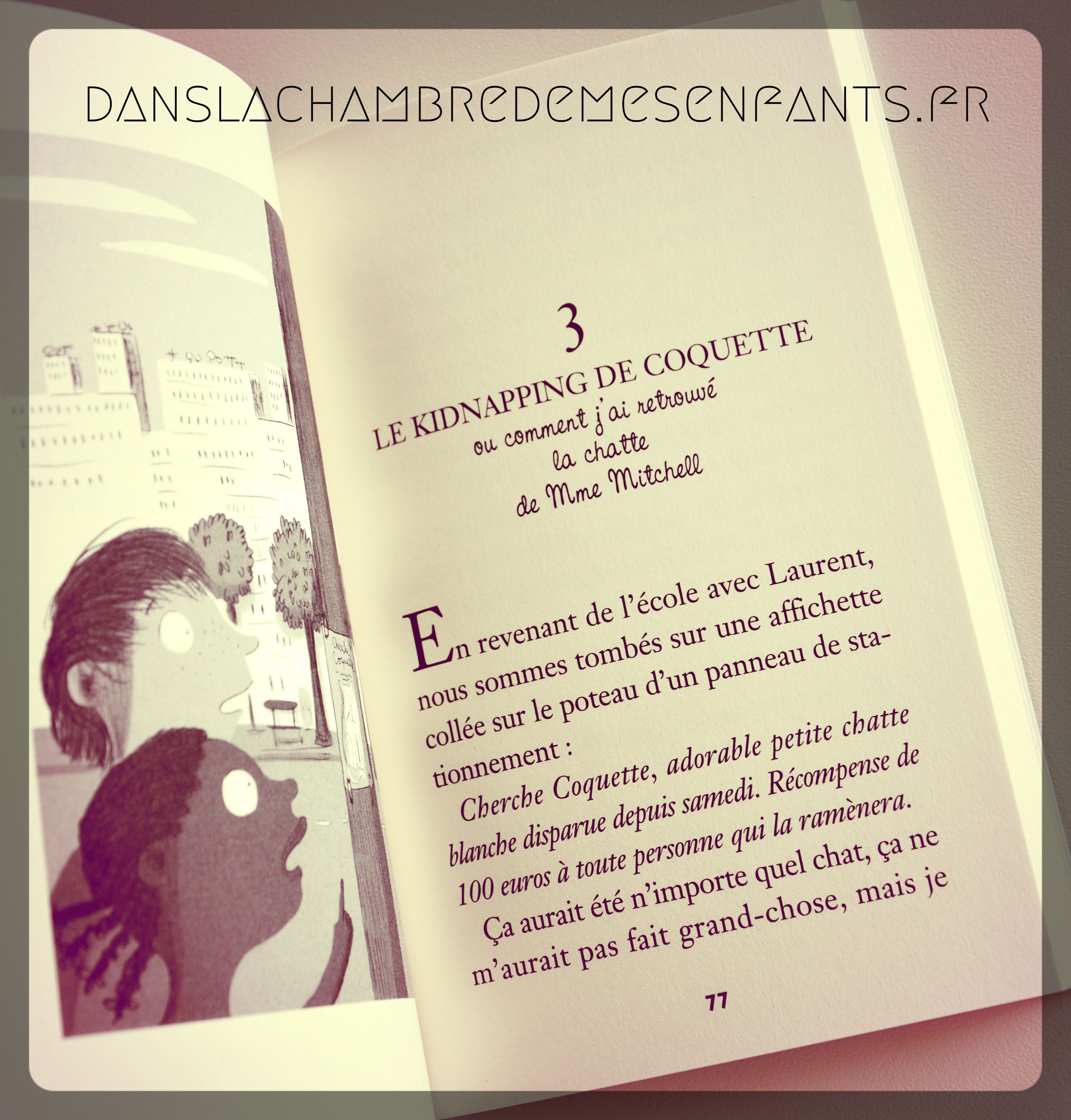 L’avis des enfants : « Nico et le chagrin d’amour, il est pas mal. Tu peux le lire ! » m’avertit Alex. J’ai d’abord été surprise par les gros caractères de la 1ère page, « Mais non, après le texte est plus petit, tu vas voir. » Merci mon guide littéraire 🙂 Il l’a lu facilement et avec plaisir. La proximité avec sa vie d’enfant ne doit pas y être étrangère, notamment son histoire d’amour avec… chut !