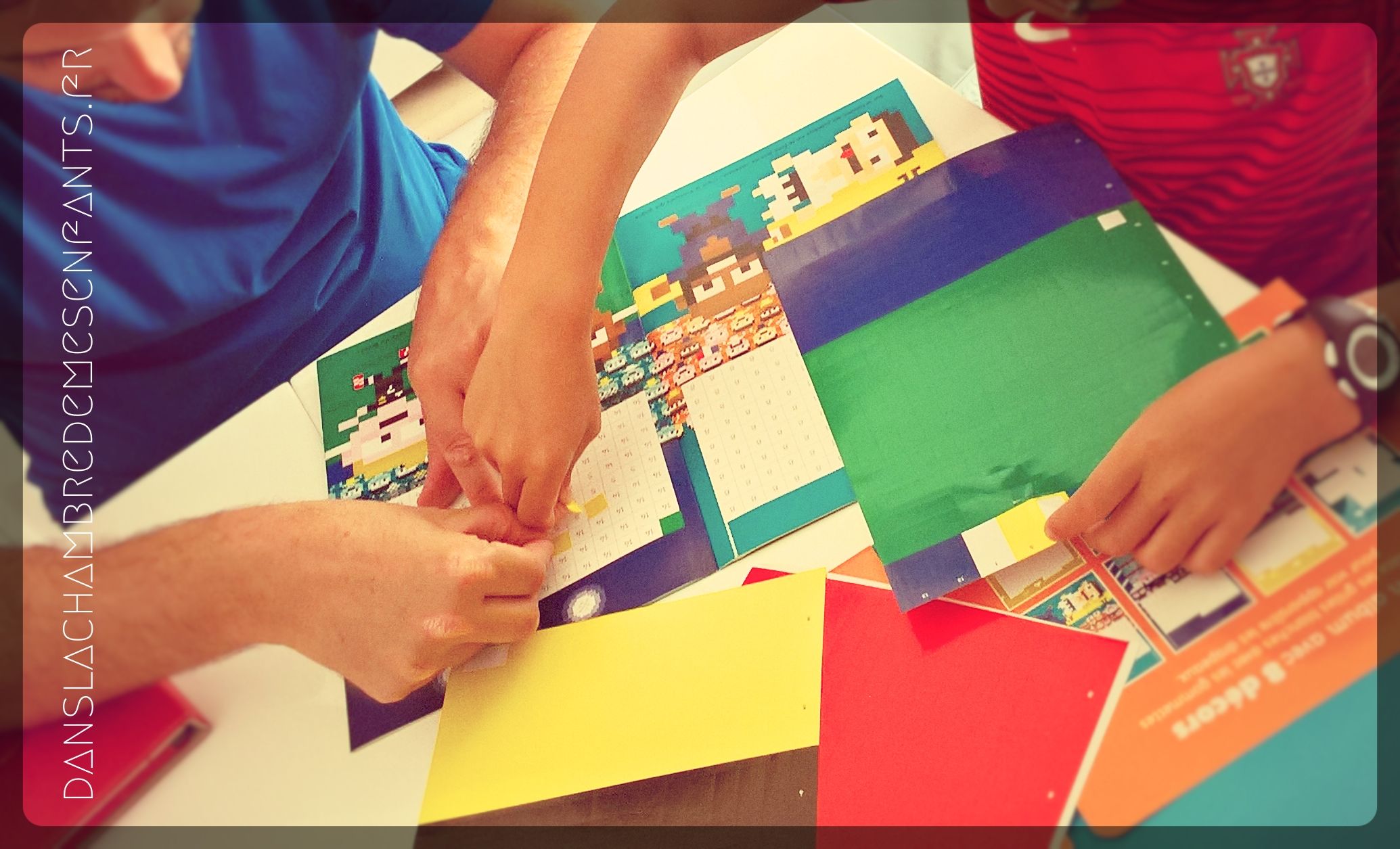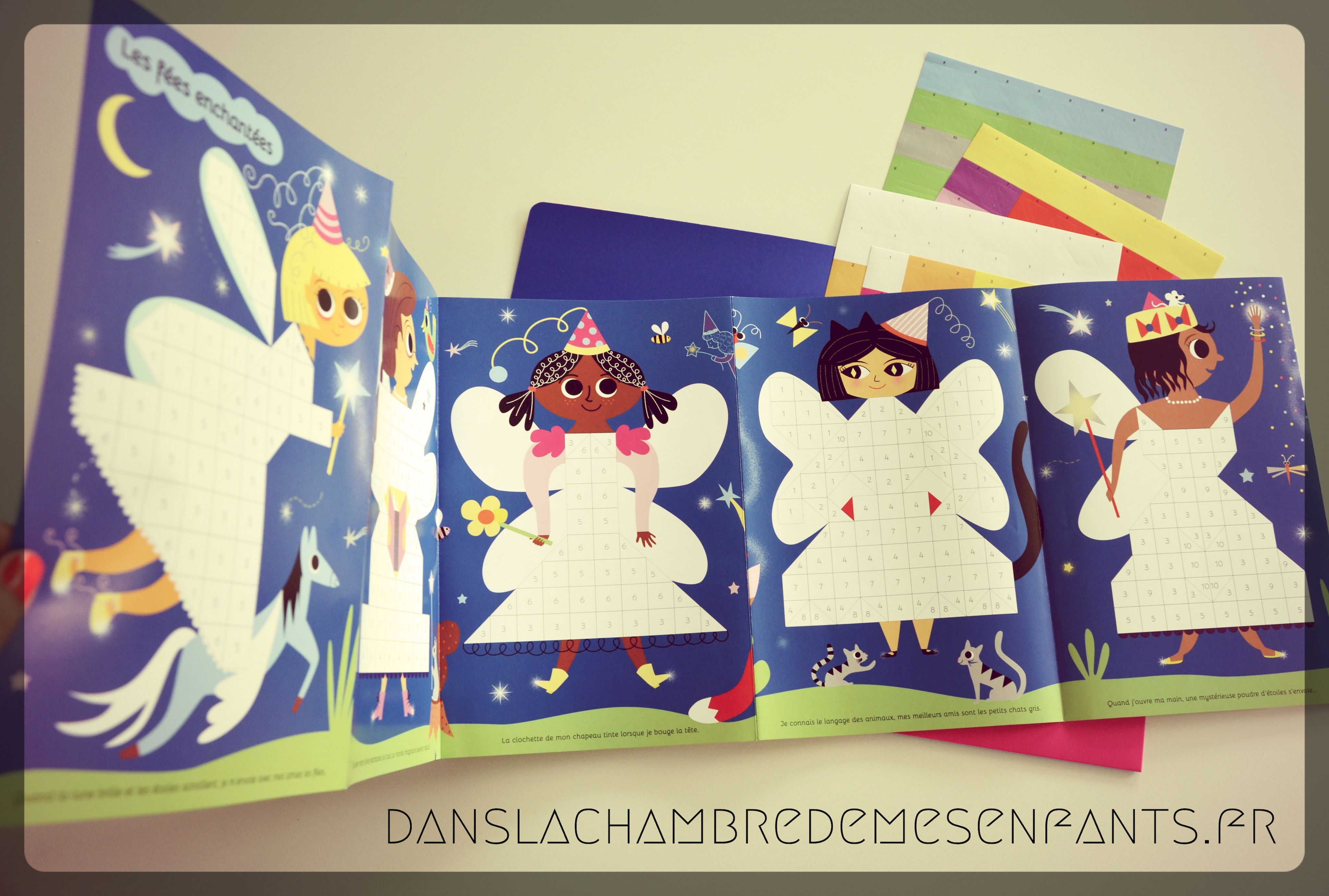 L’avis des enfants : Alex, 6,5 ans, a vraiment été content de découvrir cette nouvelle version. Le sujet (le sport) n’est pas celui qui l’intéresse le plus mais l’activité en elle-même l’avait déjà conquis (il est toujours fan de stickers). Il a aussi remarqué son format (dépliant) qui lui a plu ainsi qu’à son père qui a partagé l’activité avec lui car mon fils était « impressionné » par le grand nombre de stickers par tableau. Par contre, il a regretté que les stickers ne donnent forme qu’aux drapeaux et non pas aux personnages comme c’est le cas pour le 1er titre. Emi, 2,5 ans, était aussi très très très tentée et le sujet (les fées) l’a de suite interpellée mais elle est un peu trop jeune pour les mosaïques magiques.