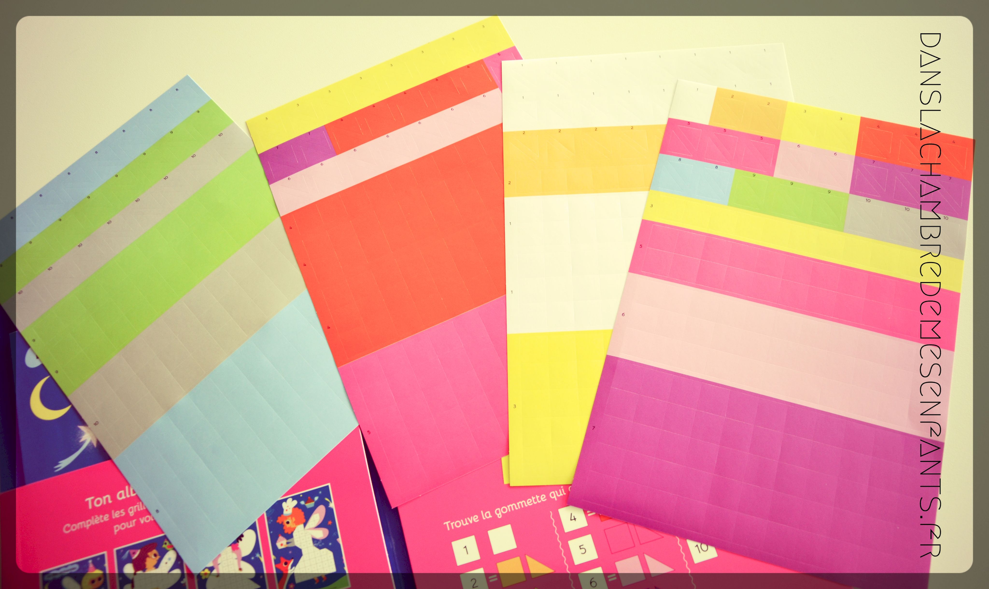 Ce sont des ouvrages intéressants car ils permettent de répondre au grand intérêt des enfants pour les stickers tout en l’orientant vers un jeu de concentration, assez simple, pour l’élaboration d’une œuvre. La détente et le plaisir sont aussi de la partie. Enfin, les stickers sont repositionnables, ce qui est important surtout pour le titre accessible dès 3 ans