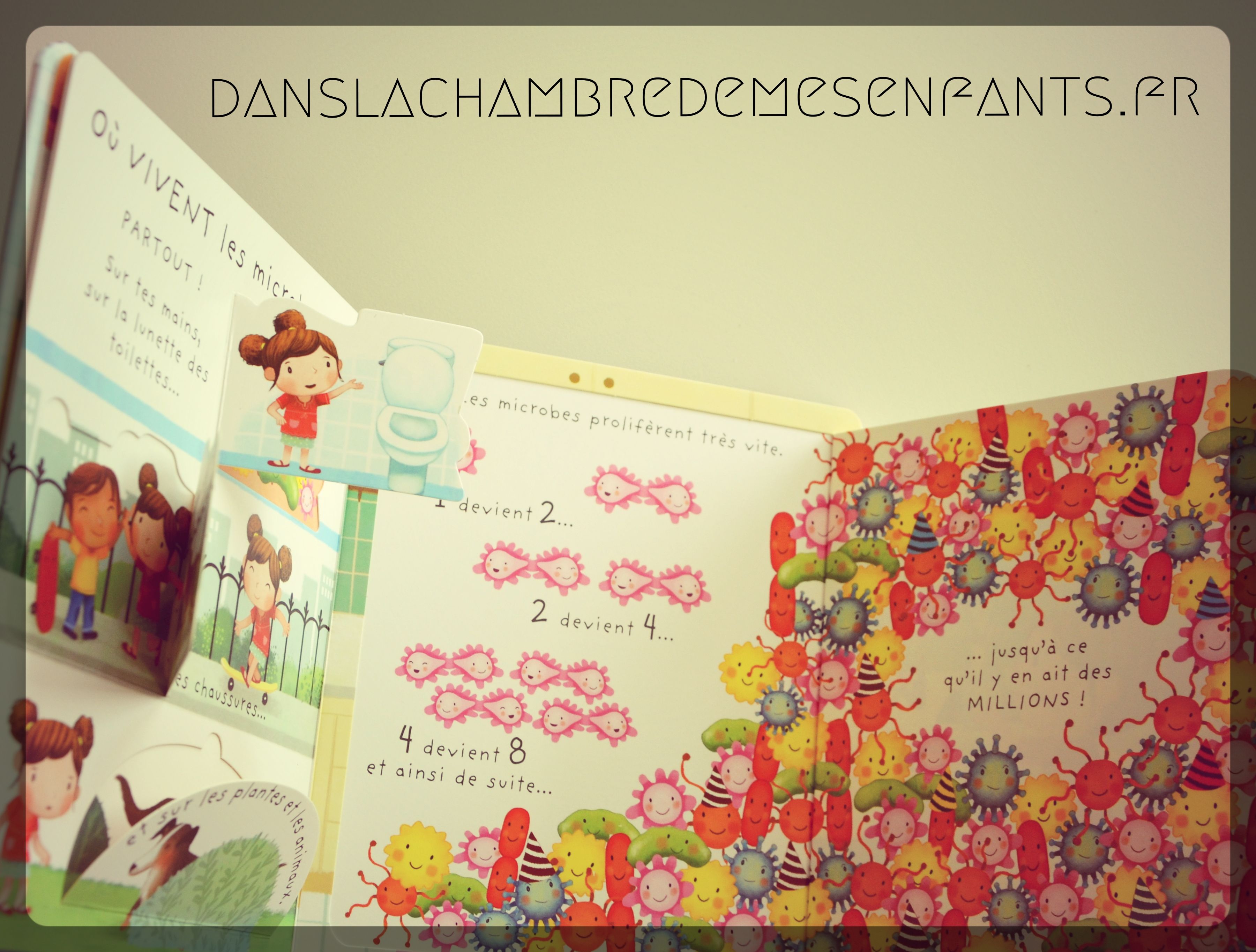 Petit retour sur une collection de livres de découverte animés accessible dès 3 ans avec ce titre qui est particulièrement d’actualité en cette période (!). A travers un petit format cartonné de qualité, avec d’agréables illustrations en 1er plan, il est question, cette fois, de s’intéresser aux microbes.