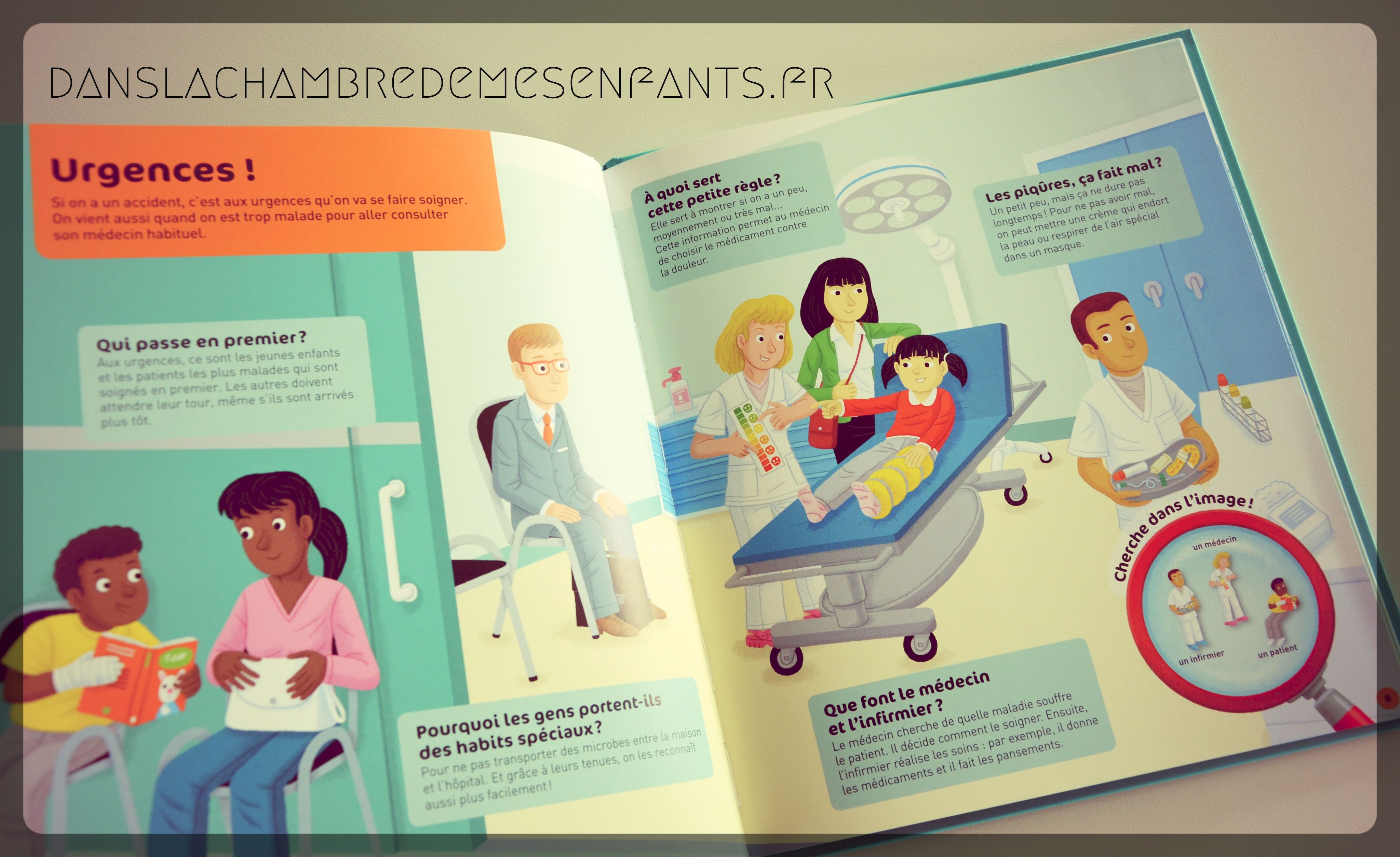 - Bienvenue à l’hôpital : « Qu’on ait une blessure ou une grosse maladie, les portes de l’hôpital sont toujours ouvertes ! Est-ce que tout le monde peut venir ? « Pourquoi y a-t-il une entrée spéciale pour les urgences ? […] »