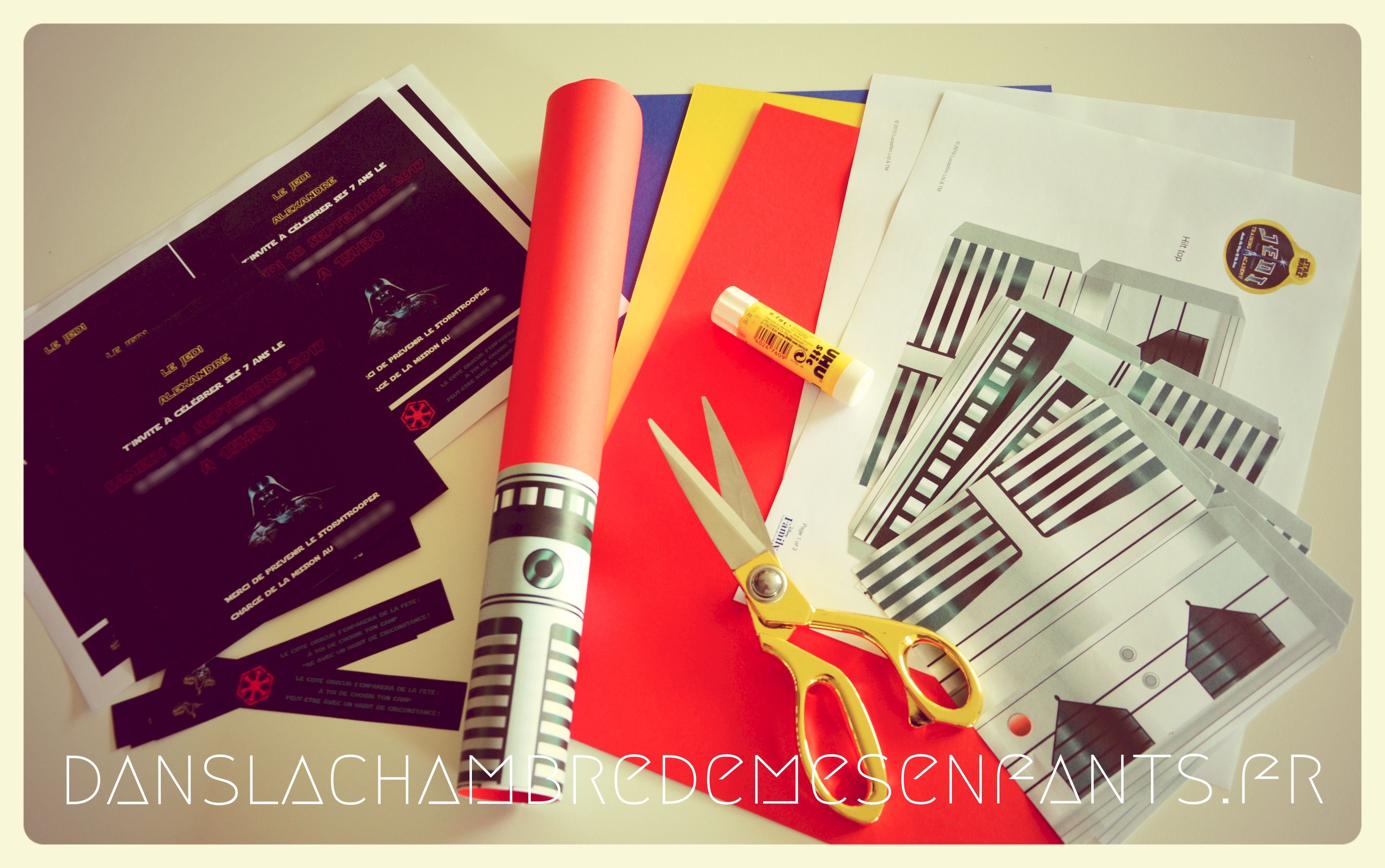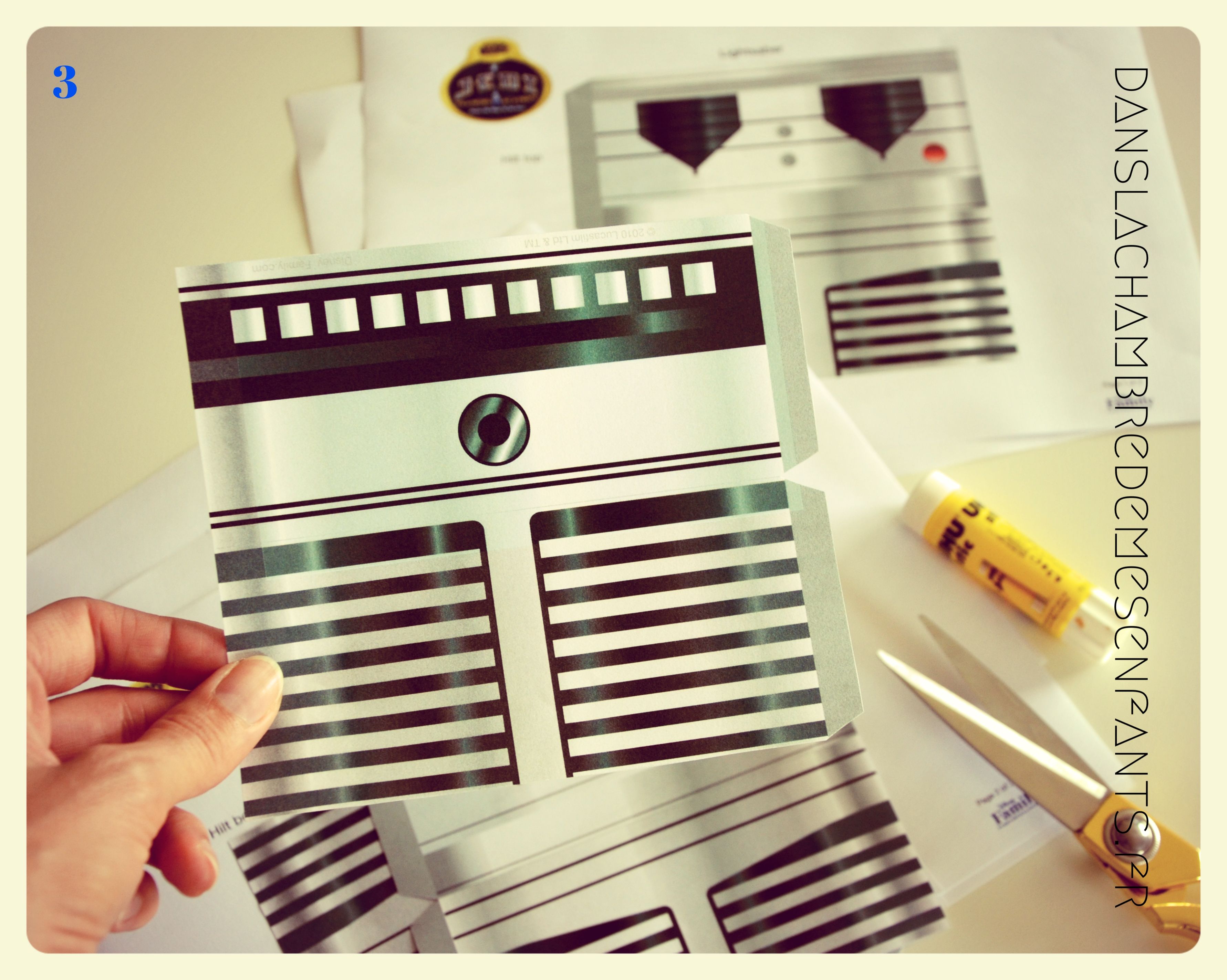 3 – Télécharger gratuitement le modèle de poignée de sabre laser sur le site de Disney Family ; imprimer et découper le modèle.