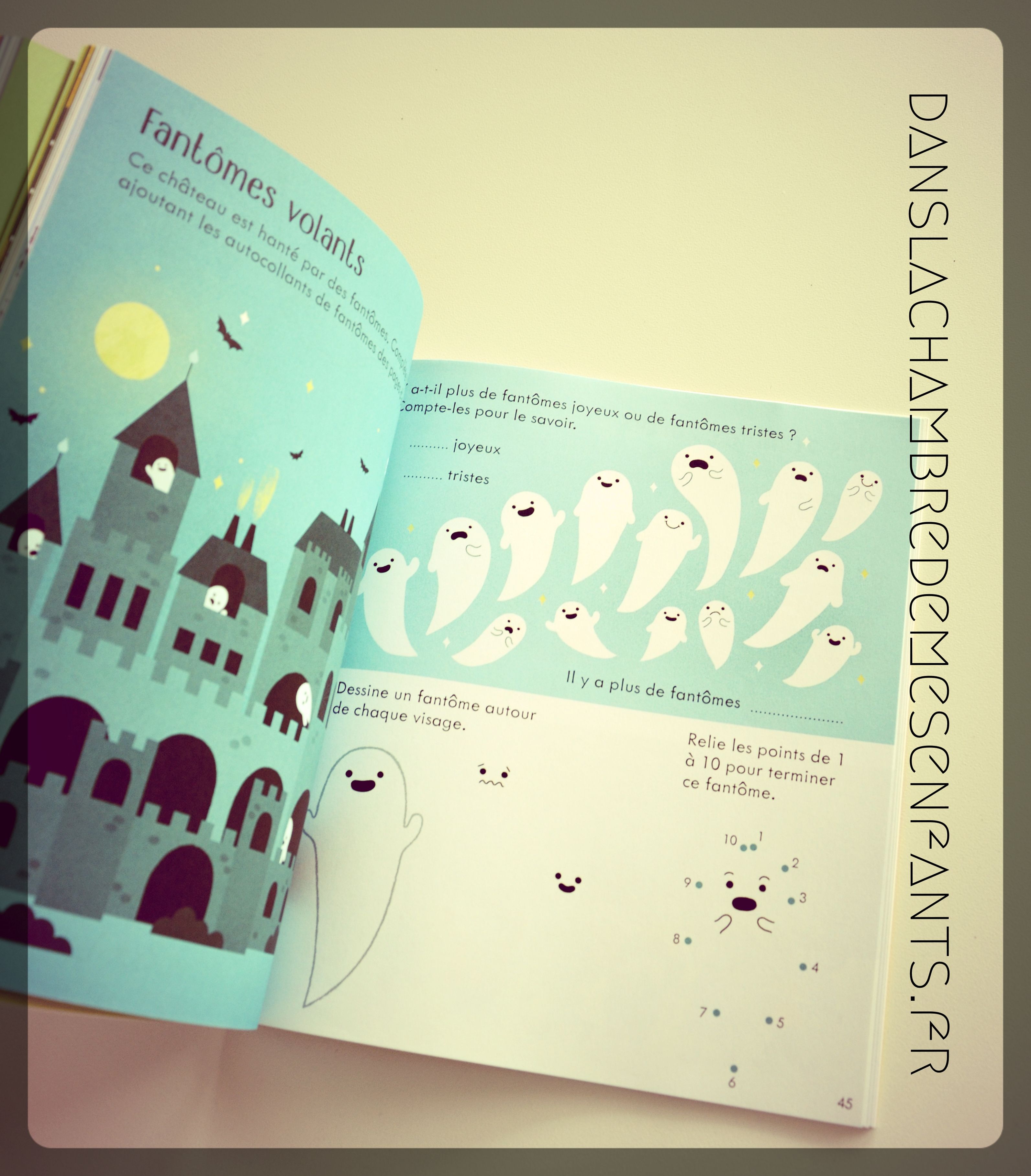 C’est un cahier d’activité accueillant et dont la qualité est constante. Il est aussi pertinent pour divertir les enfants durant les vacances de Toussaint souvent avec un temps pluvieux tout en mettant d’actualité les préparatifs d’une fête attendue avec des déguisements et des bonbons à la clé 🙂