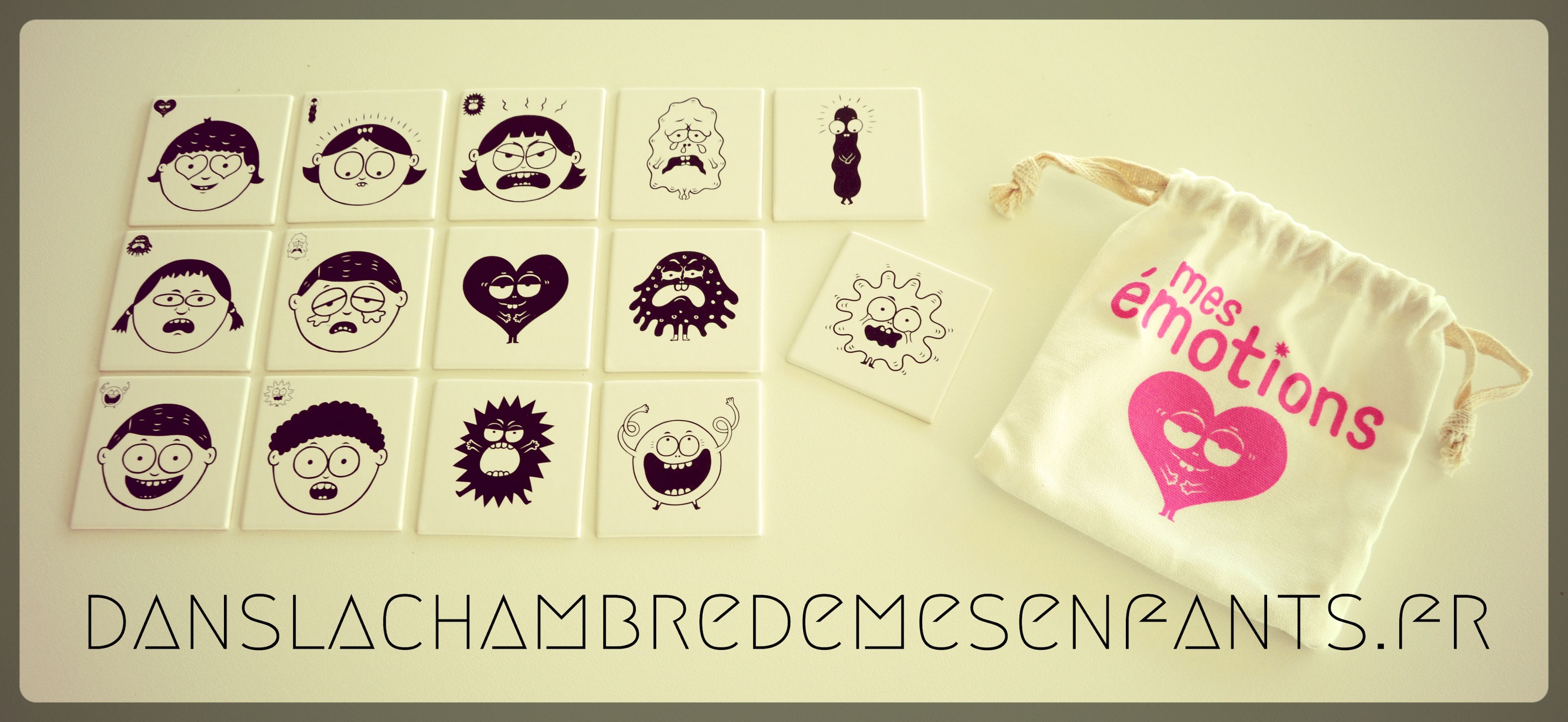 - le sac des émotions / le jeu de mémo : 7 émotions correspondant à 7 autres cartes personnages à tirer au hasard et éveiller des souvenirs à exposer ; réunir le plus de paires pour gagner et formuler des phrases à partir des cartes tirées,