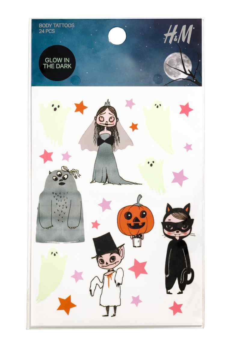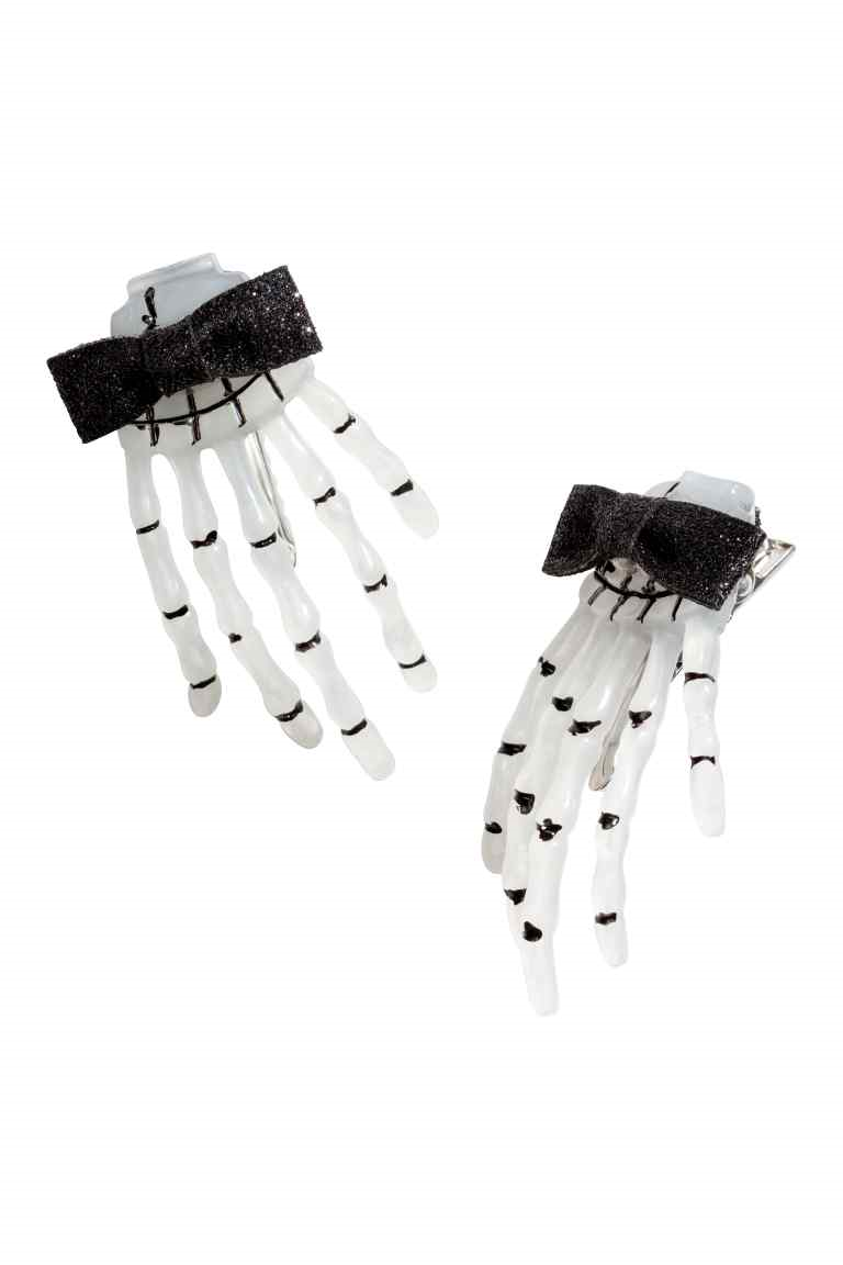 Du simple bijou au complément de costume, voici quelques idées en vrac : boucles d’oreille citrouille, bracelet chat noir, loup vénitien, barrettes mains de squelette, serre-tête roses, cire colorante cheveux, perruque femme, serre-tête chauve-souris, socquettes licornes squelette, ensemble 3 loups, gants squelette femme, chaussettes araignée femme, manchettes résille, tatouages éphémères phosphorescents, collants squelette, serre-tête à oreilles, mèches de cheveux colorées, vernis phosphorescent, maquillage autocollant squelette et tatouages éphémères.