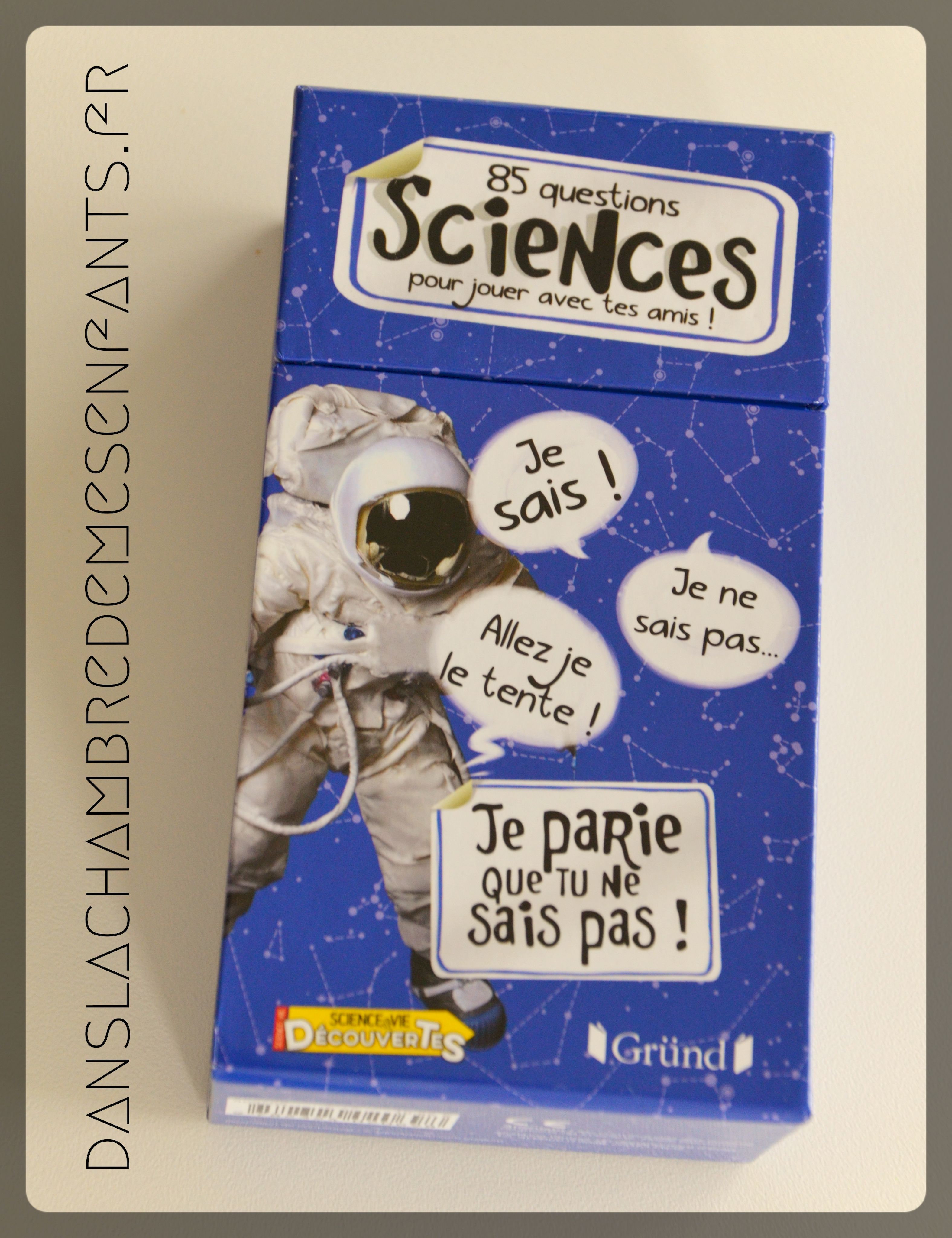 Cette petite boîte propose un jeu simple autour de 85 questions sur divers sujets scientifiques :