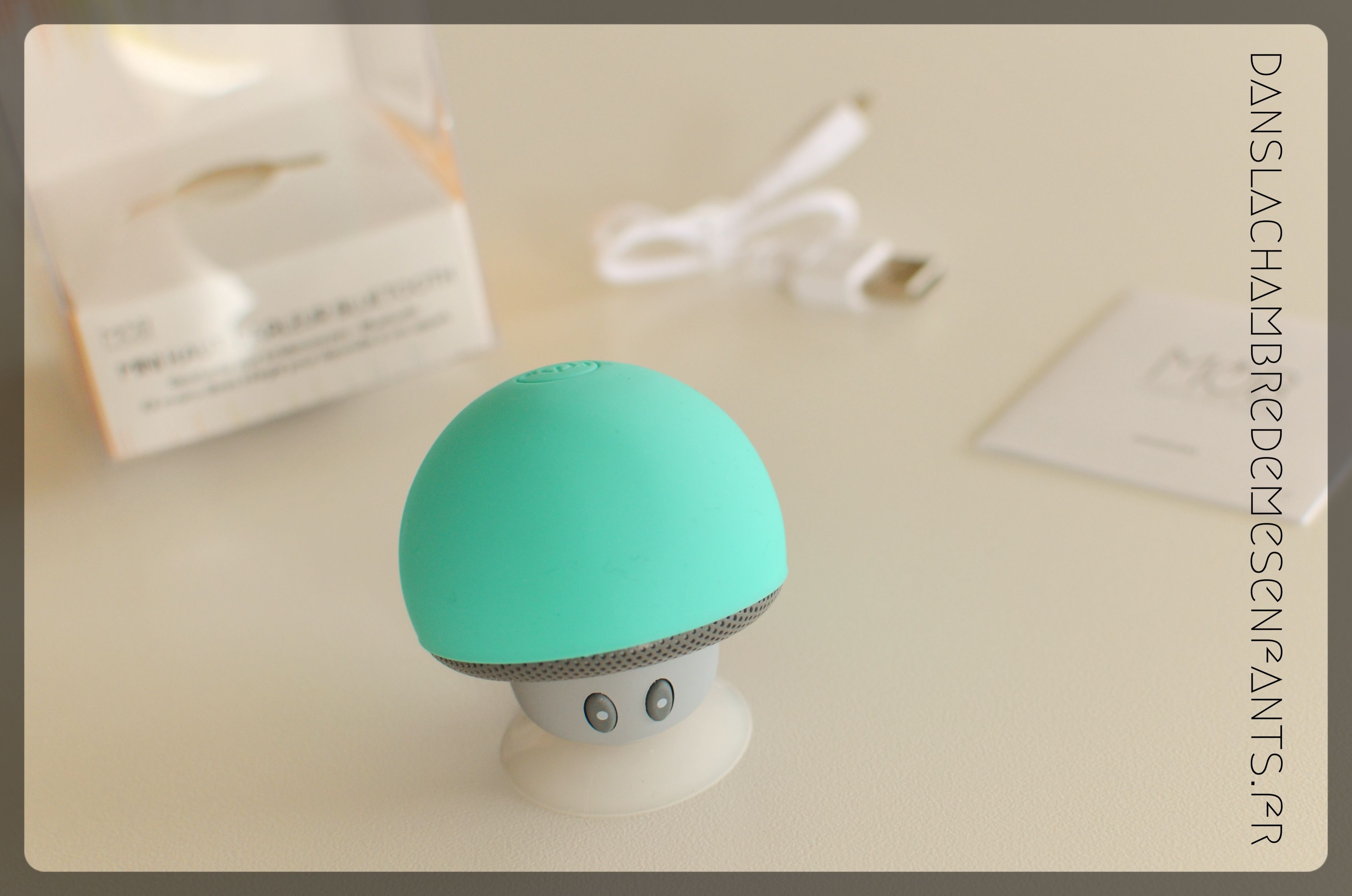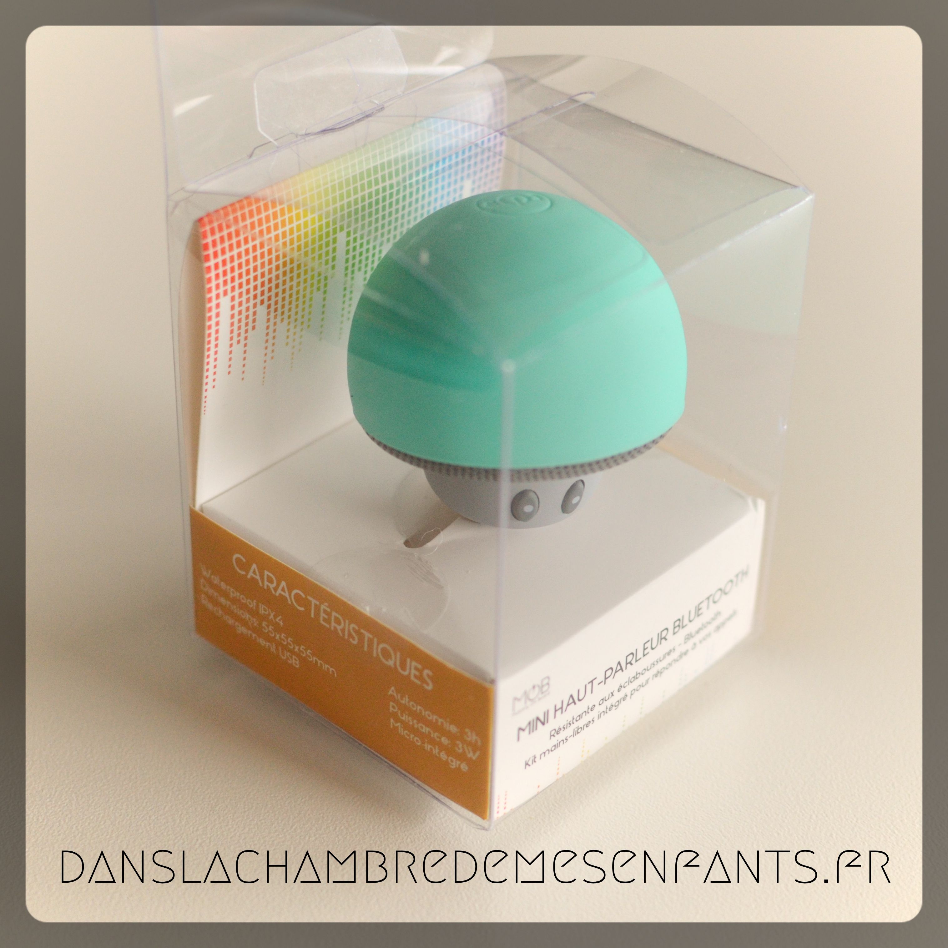 Je ne vous cache pas que, lorsque je l’ai sélectionné, j’ai pensé à une problématique venue au moment du changement de déco de la chambre d’Alex : alors que mon fils grandit, comment lui permettre d’améliorer ses moments d’écoute de musique sans passer par un nouvel appareillage (oubliez le lecteur CD pour les plus petits) qui prend de la place et limite les possibilités d’utilisation ? Comme il est équipé d’une tablette, il m’a semblé intéressant de passer à l’enceinte Bluetooth et celle-ci ne manquait ni d’esthétique ni de pratique.