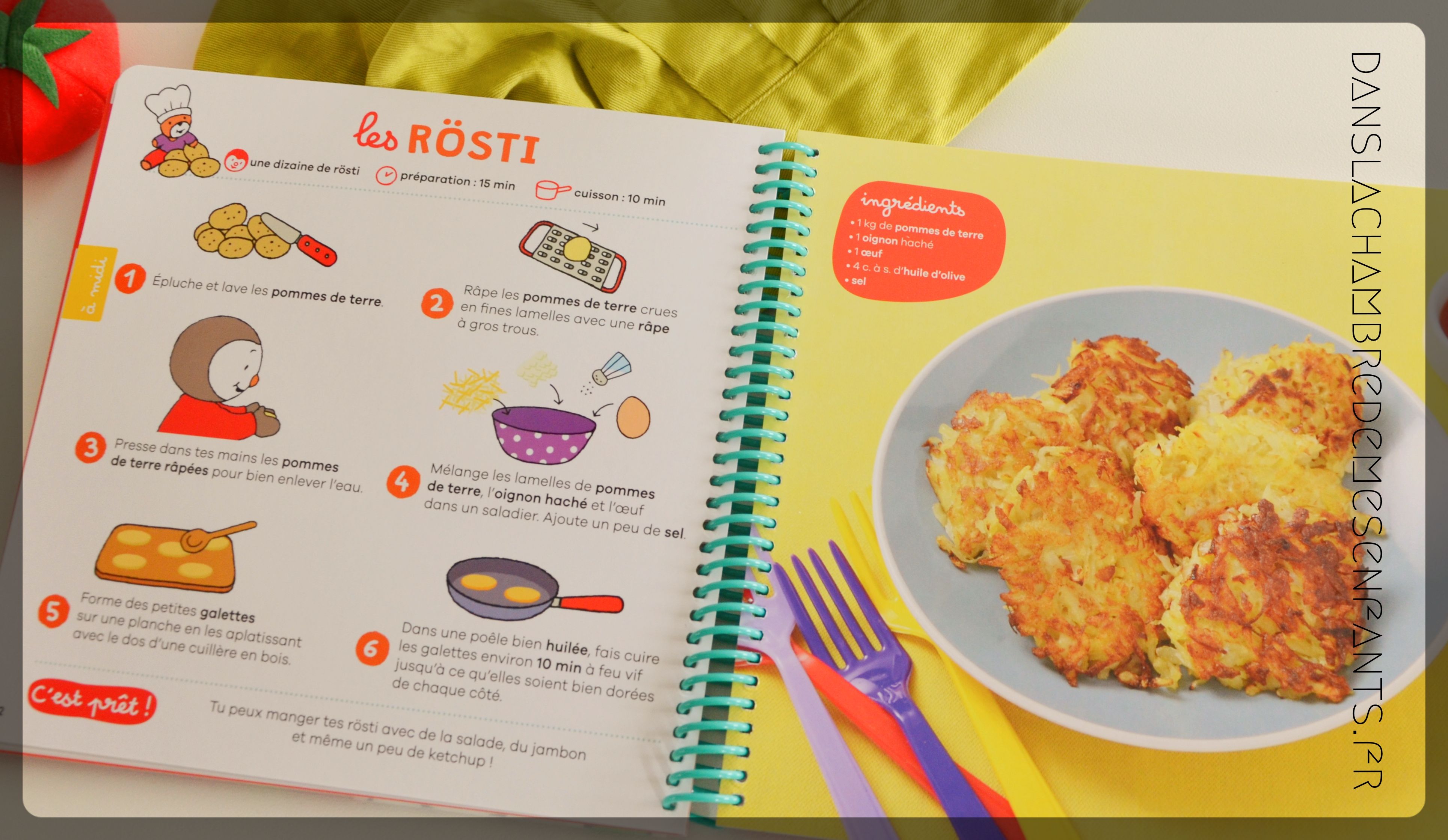 L’avis des enfants : Emi, bientôt 3 ans, a voulu tester ce livre assez rapidement grâce à la présence de T’choupi qu’elle aime beaucoup. Son grand-frère et elle ont été motivés pour réaliser de nombreuses recettes même s’ils ont surtout aimé lécher la casserole ! La prochaine recette sera sûrement celle du gâteau d’anniversaire ou les rösti (rv sur Instagram !).