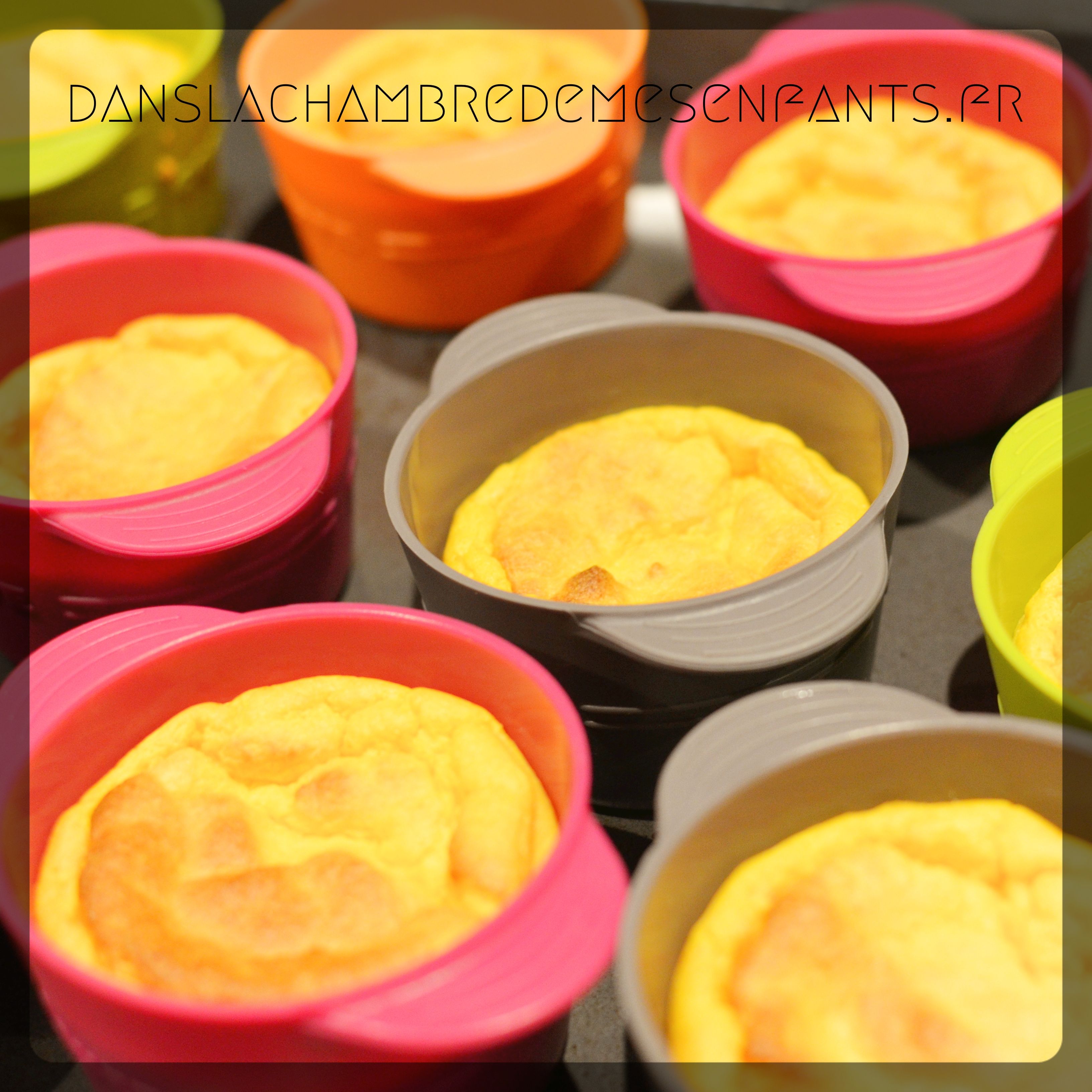 - le soufflé de carottes à la vache qui rit : nous avons opté pour des mini-soufflés et le résultat était très réussi. Le goût était un peu trop sucré pour moi tant dis que les enfants ont adoré ;