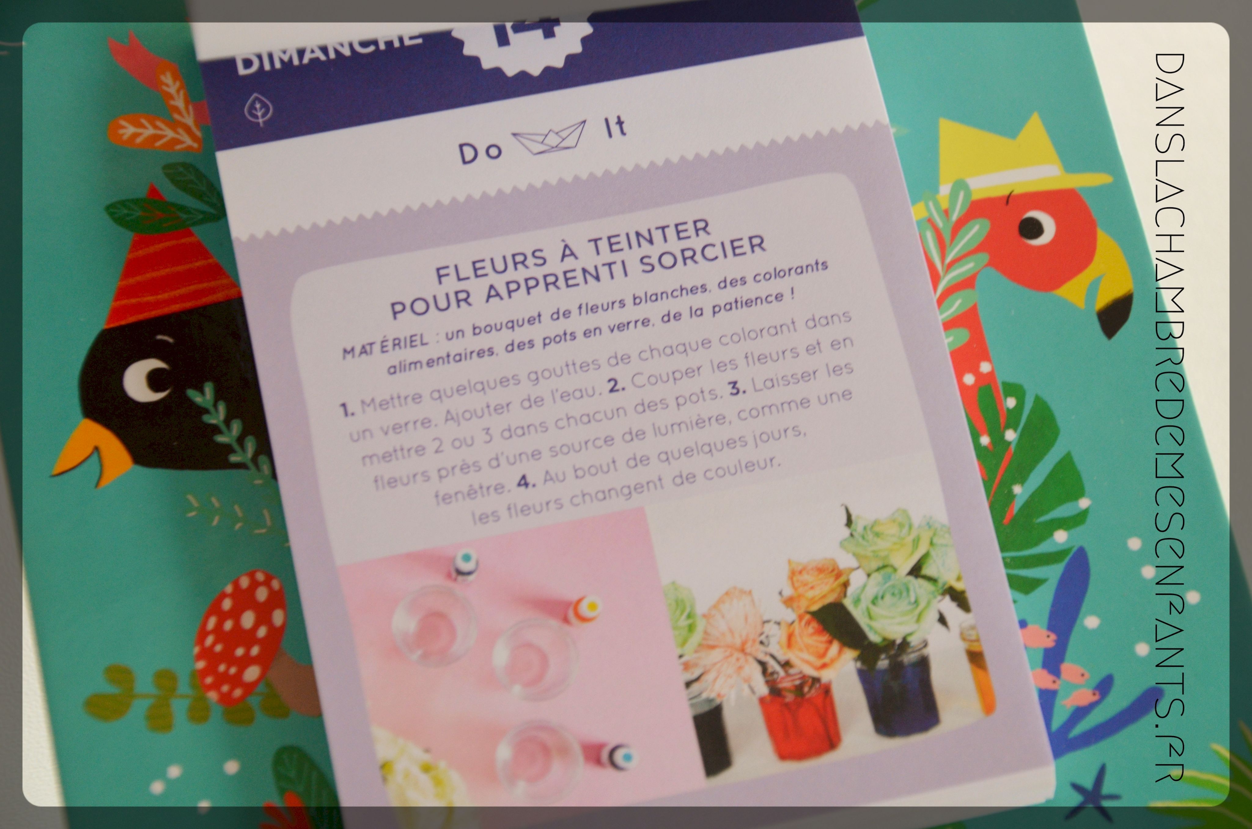 L’avis des enfants : Alex, 7 ans, a noté une différence avec l’éphéméride « Mon super calendrier » qu’il suit sans faute. Ce format simplifiée capte moins son attention que celui documenté mais certaines pages le tentent tout de même (DIY boîte à dent, les jeux…).