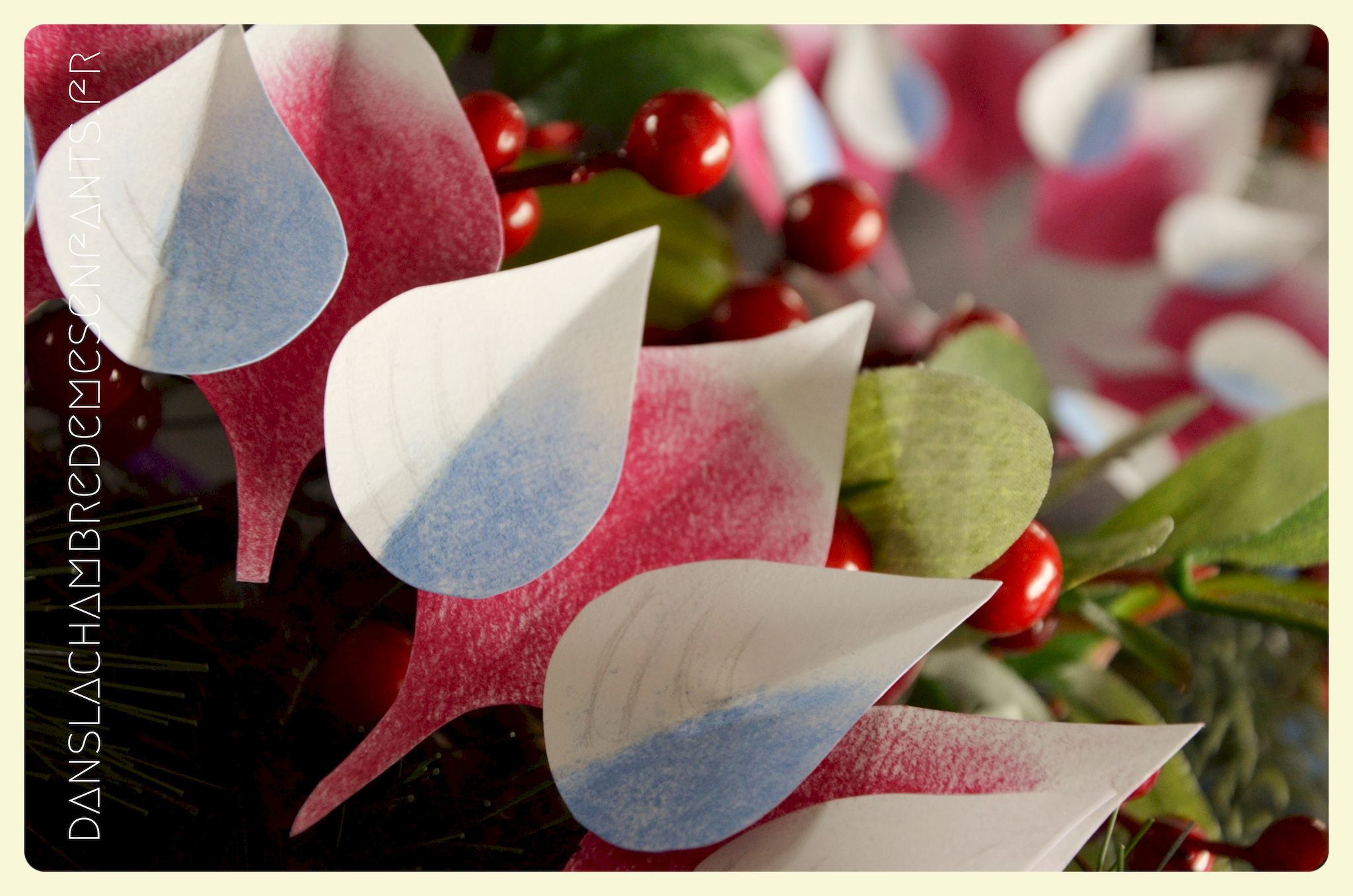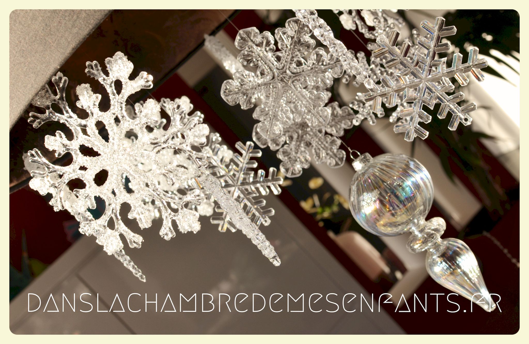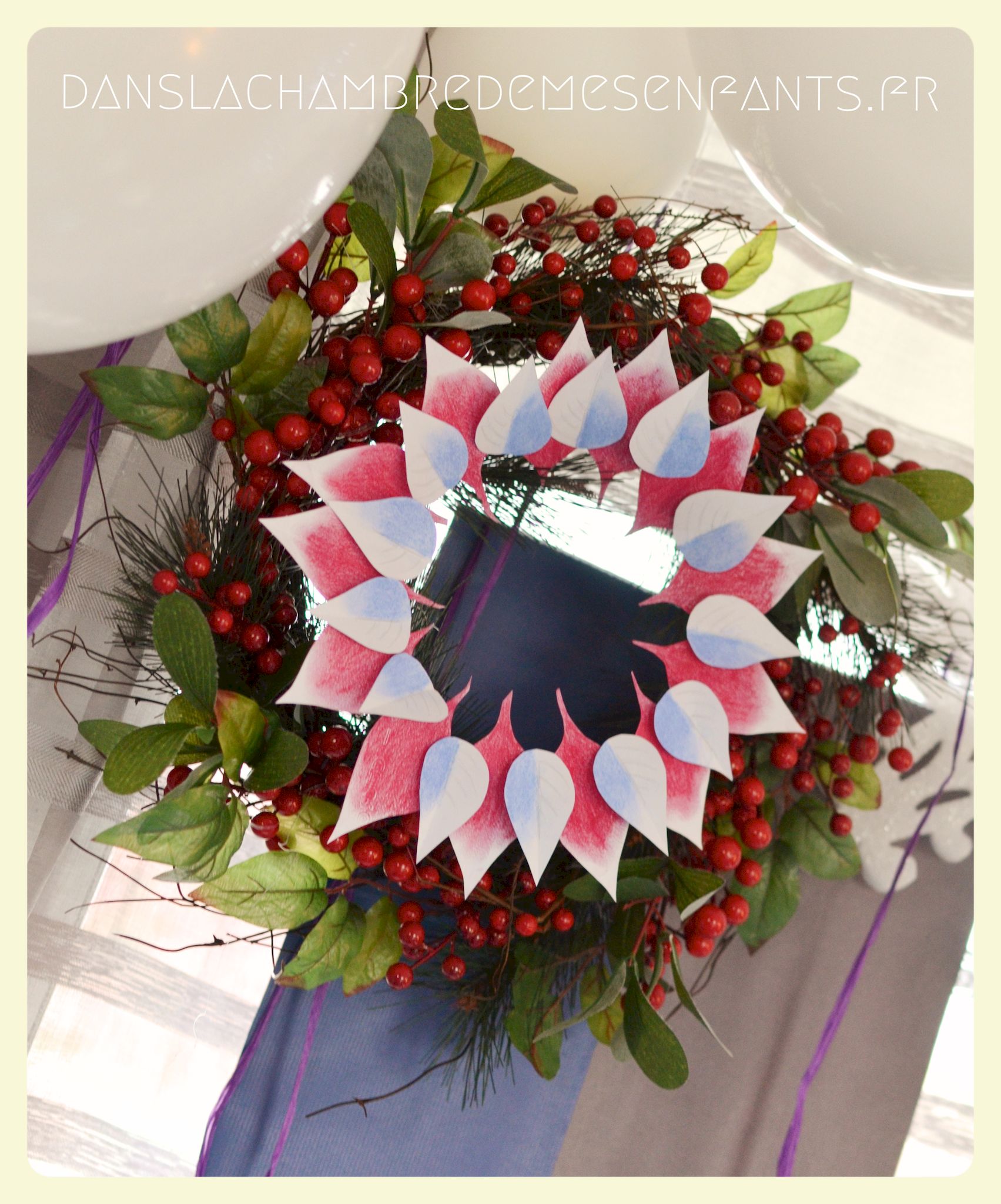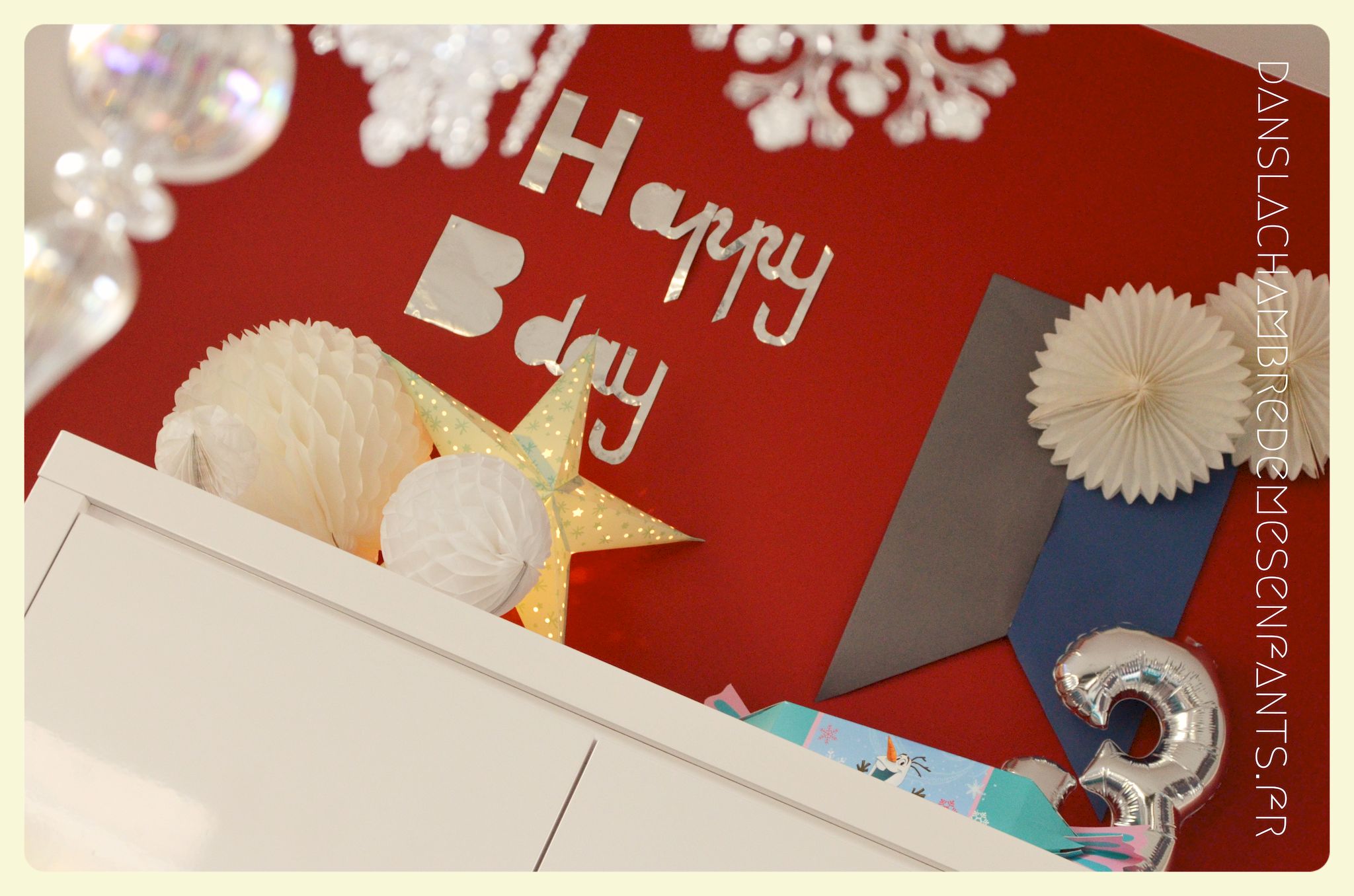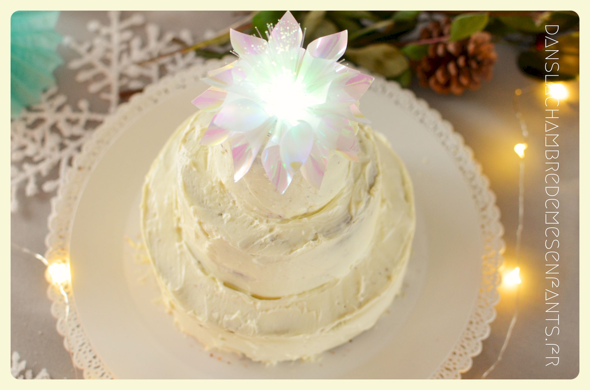 Afin de faire venir l’hiver dans notre salon, avec un côté féérique à la hauteur d’une princesse devenue reine !, j’ai imaginé ce décor, je l’avoue, en très peu de temps… Etre mère, c’est souvent vivre deux vies en une alors le temps est difficile à gérer, surtout à la sortie de période de fêtes (certains détails en témoignent, ex : le drapeau de la « une » de l’article était un brouillon que j’ai placé en dernière minute sans pouvoir l’ajuster suffisamment).
