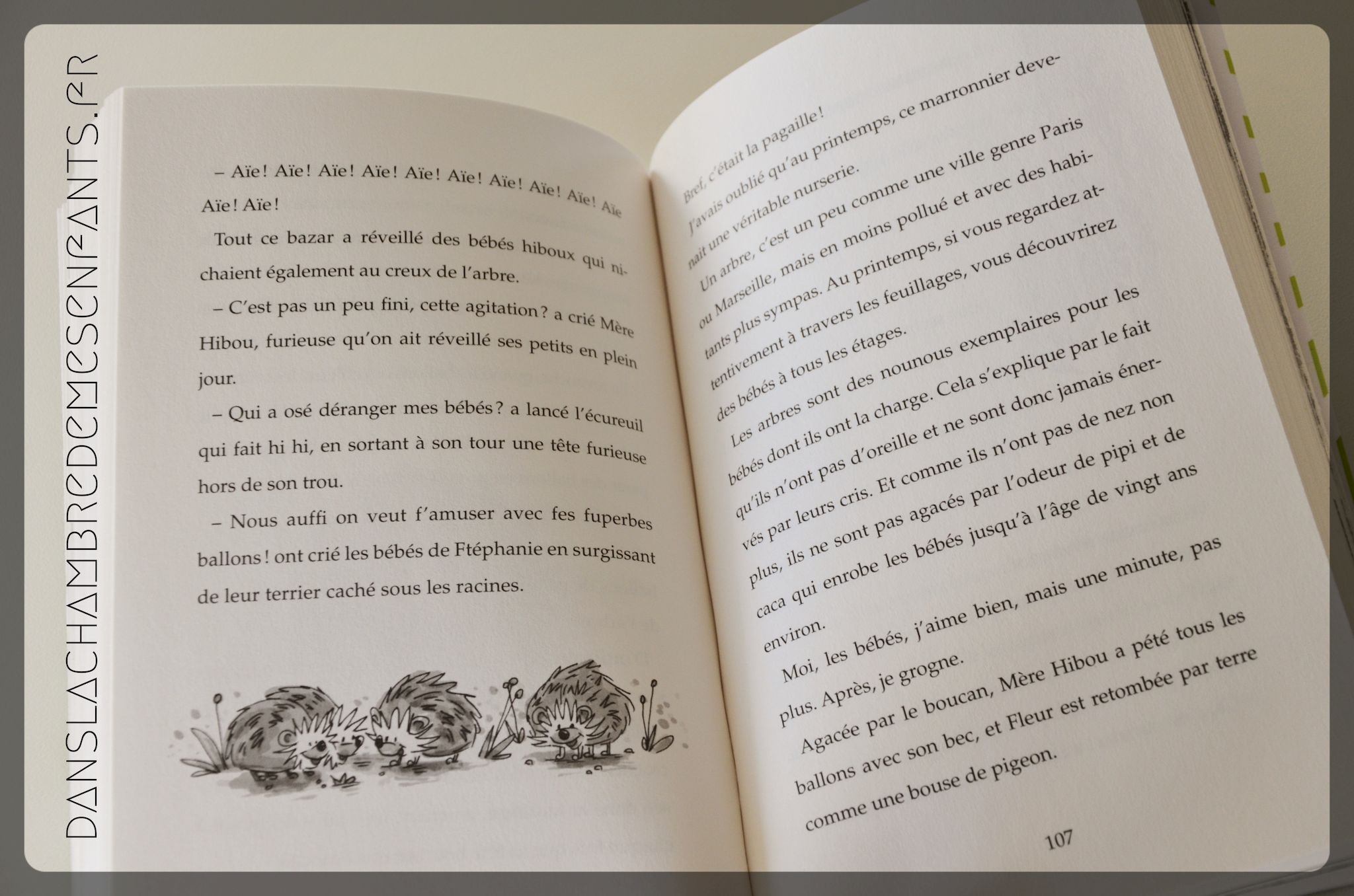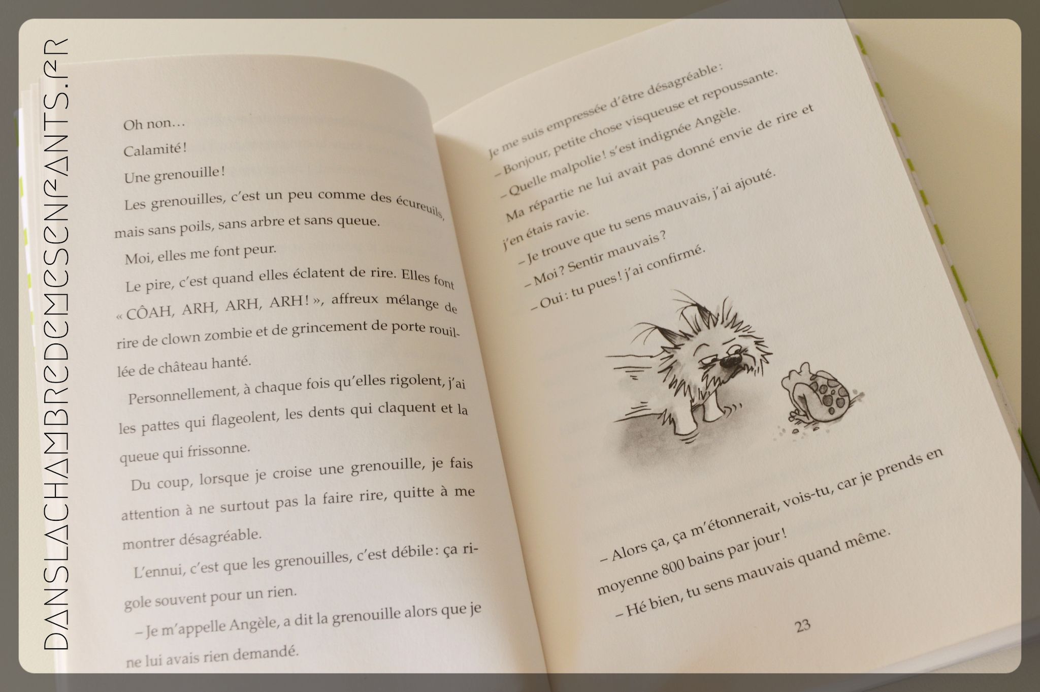 La lecture m’a étonnée au début, pas forcément séduite, puis j’ai été prise par la flot, le débit de paroles de Gurty. On découvre ses vacances qui sont immédiatement mouvementées, les retrouvailles avec ses amis et les désagréables voisins. Ainsi que leur chat, Tête de fesses, enfin… Jean-Jacques ! Ce vocabulaire participe à l’humour de l’ouvrage et il est ici autorisé ! Rien de bien méchant On plonge avant tout dans le quotidien de notre héroïne, loin d’être monotone, mêlé à une histoire plus importante : l’arrivée du haut débit internet. C’est surtout ce que souhaite les voisins en délogeant les animaux à l’arrivée des beaux jours.