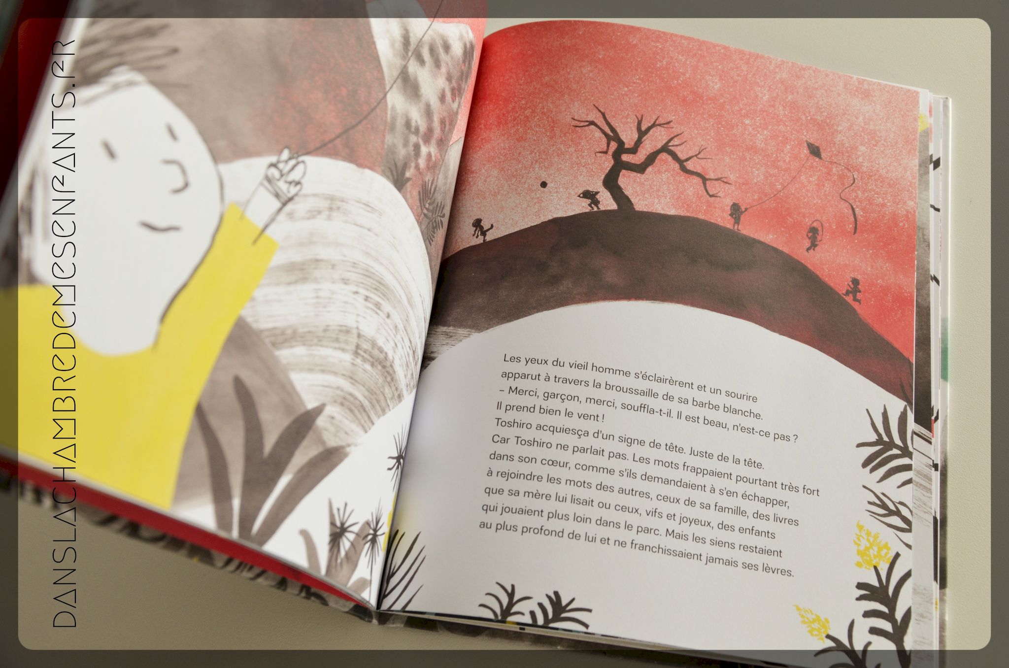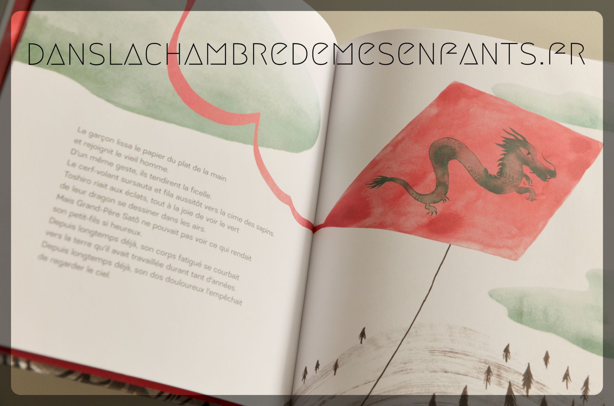 Cet album raconte une histoire qui se déroule bien loin d’ici, au pays des cerisiers en fleur. Ce décor est joliment mis en scène par des illustrations mêlant technique à l’encre et traits enfantins pour le jeune personnage.