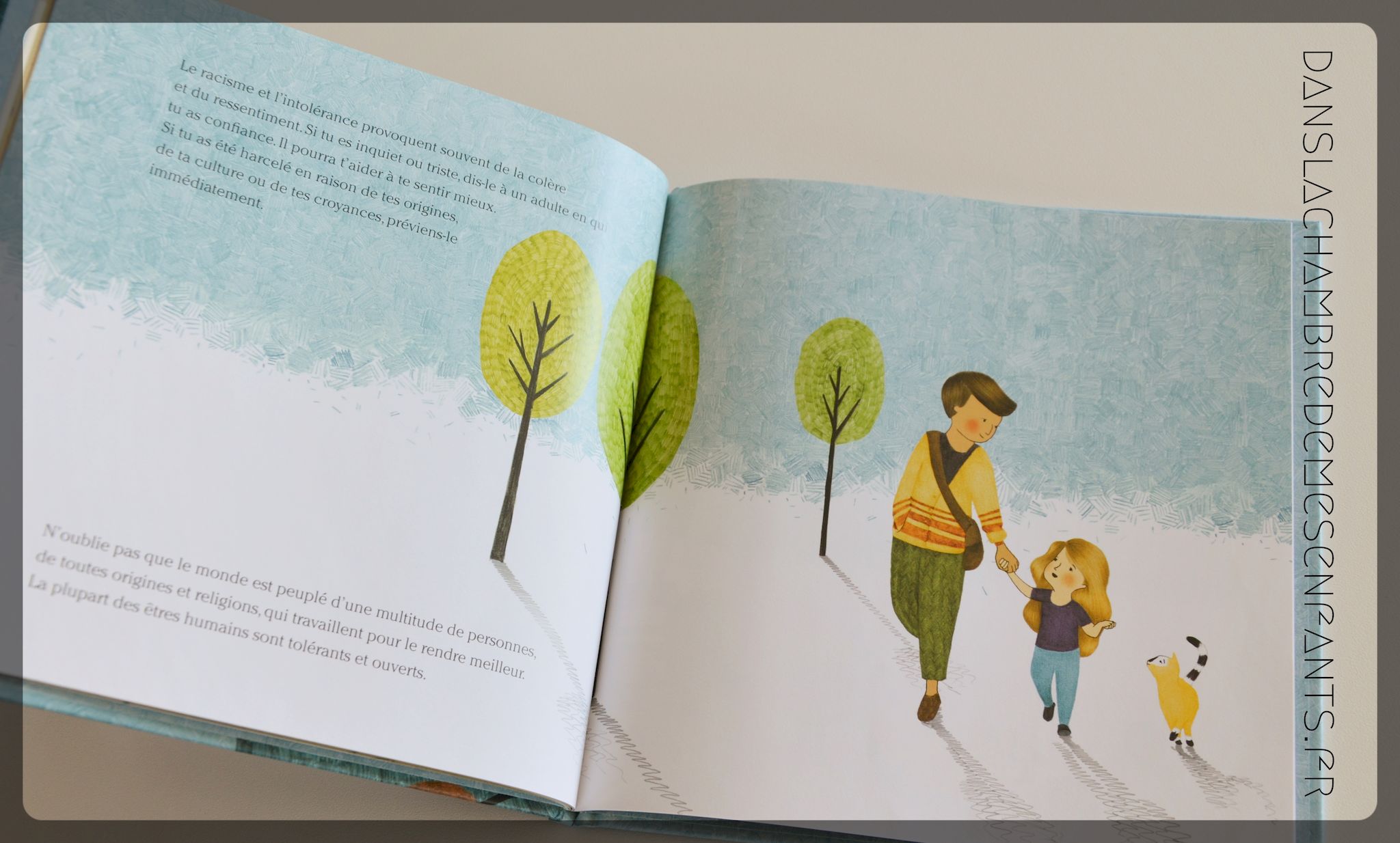 « Le racisme et l’intolérance » présente : la vie ensemble, le racisme, l’intolérance, l’origine des préjugés, comment cela se manifeste à l’école, jusqu’à quel point, les personnes qui apportent leur aide, le respect des différences et les choses qui unissent, l’importance d’en parler et comment le lecteur peut aider.