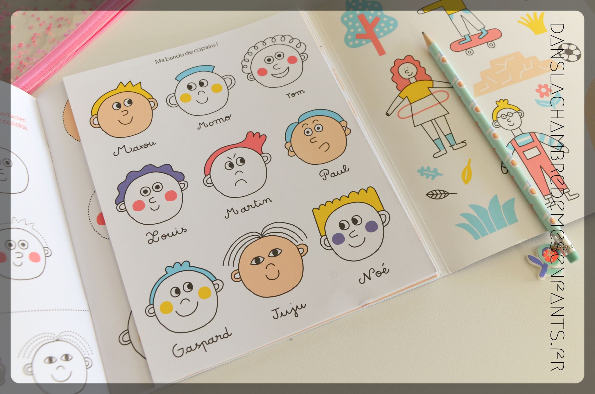 La créativité est stimulée en proposant des types de tenue, des émotions… voire un dessin complet pour faire le portrait des copains.