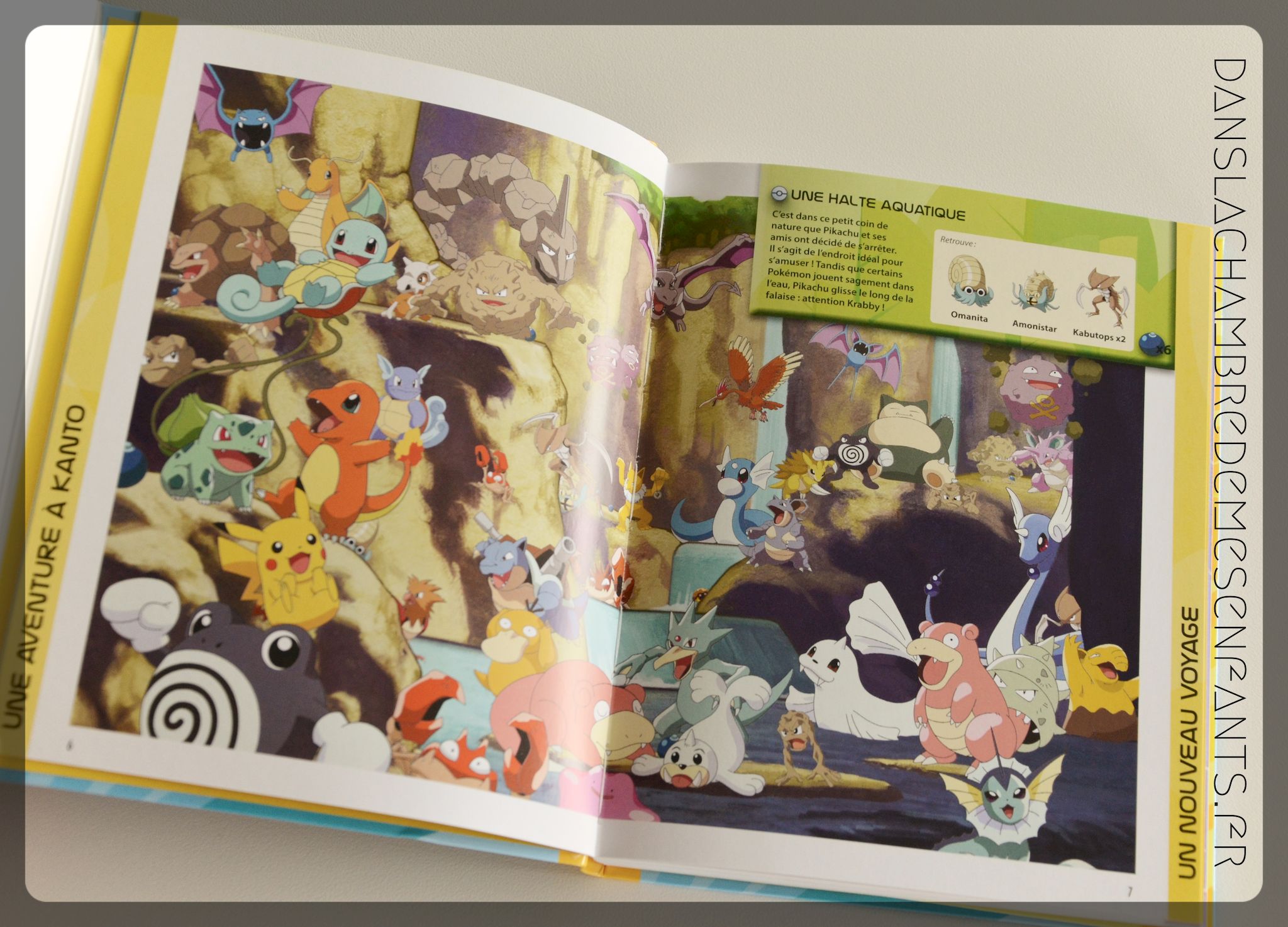 Cet ouvrage nous replonge dans les aventures des Pokémon, cette fois-ci sous un petit format, facile à emporter, plus solide et plus pratique avec une couverture plastifiée à rabats et élastique. Il s’agit de suivre Sacha à travers les 7 régions pour un grand cherche et trouve en différents tableaux (avec solutions), accompagnés d’un guide pour identifier les Pokémon (une sorte d’extrait de Pokédex simplifié).