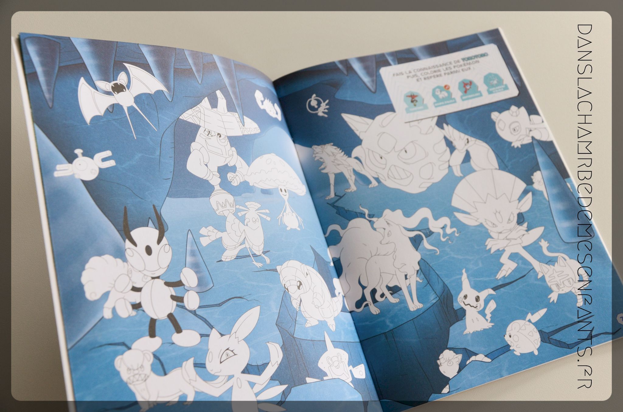 Le 2ème ouvrage lui a aussi plu car il a trouvé agréable de ne pas être « obligé » de passer des heures pour faire un coloriage. Il peut faire quelques personnages, sans colorier de grandes zones, s’il en a envie. Il n’a donc pas boudé ce titre au contraire (et moi je suis heureuse que l’attention que retient les Pokémon soit un pont vers une activité stimulant sa dextérité manuelle !).