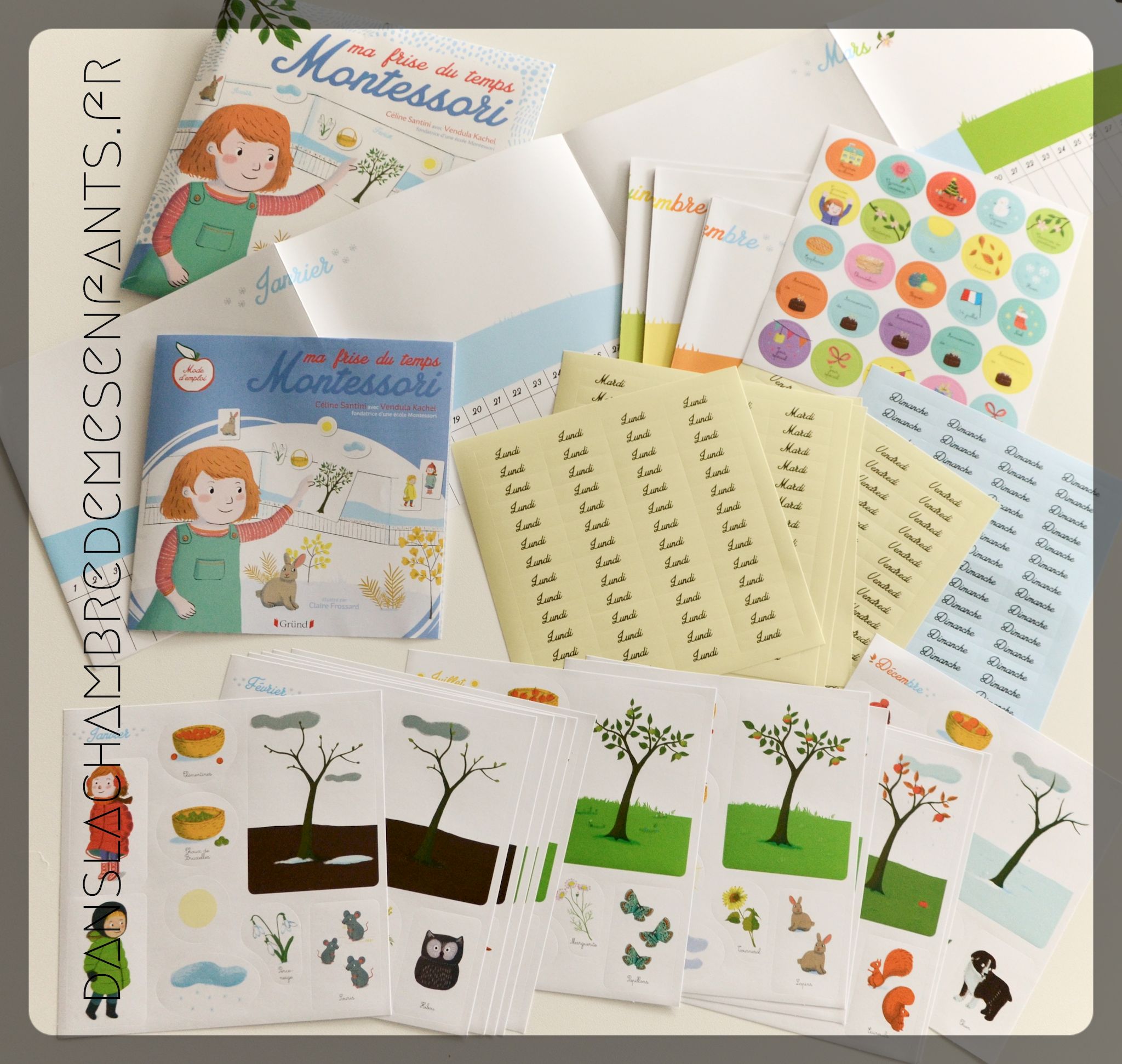 - 1 planche de 25 stickers colorés avec des évènements du calendrier (rentrée scolaire, automne, anniversaire de…, Noël…).