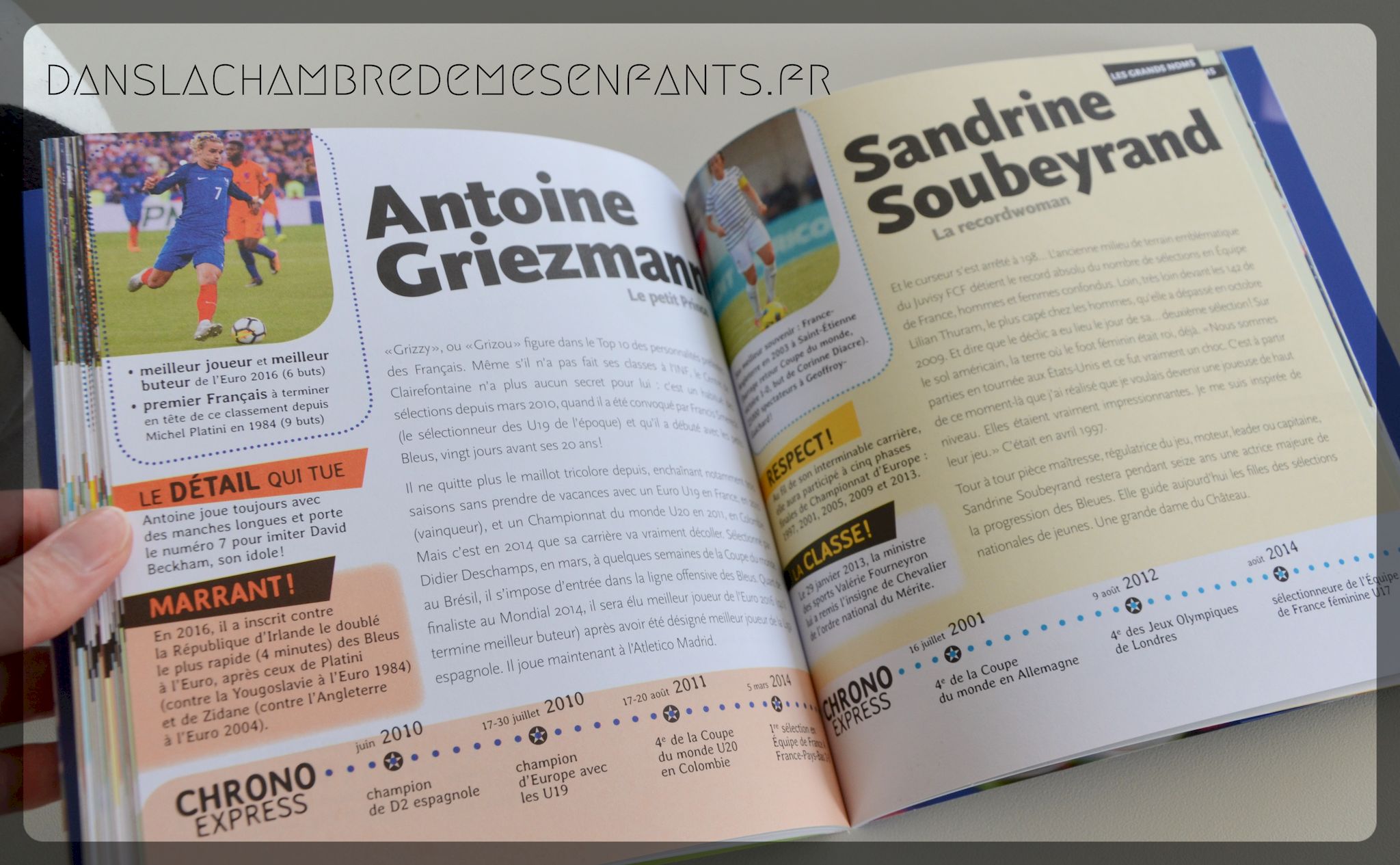 Ce ouvrage est intéressant par sa forme dynamique et la diversité des informations. Il est riche en informations qui sont, au surplus, exclusives surtout à travers des annotations étonnantes voire amusantes (ex : « André Bisson, le chef cuisinier des Bleus pendant la Coupe du monde 1998, a effectué un aller-retour en Italie pour apprendre à faire les pâtes « à l’italienne », al dente. Zinedine Zidane était fan ! »). J’apprécie toujours la facilité de lecture qui permet au lecteur, dès 9 ans, de consulter l’ouvrage en choisissant les titres de façon désorganisée.