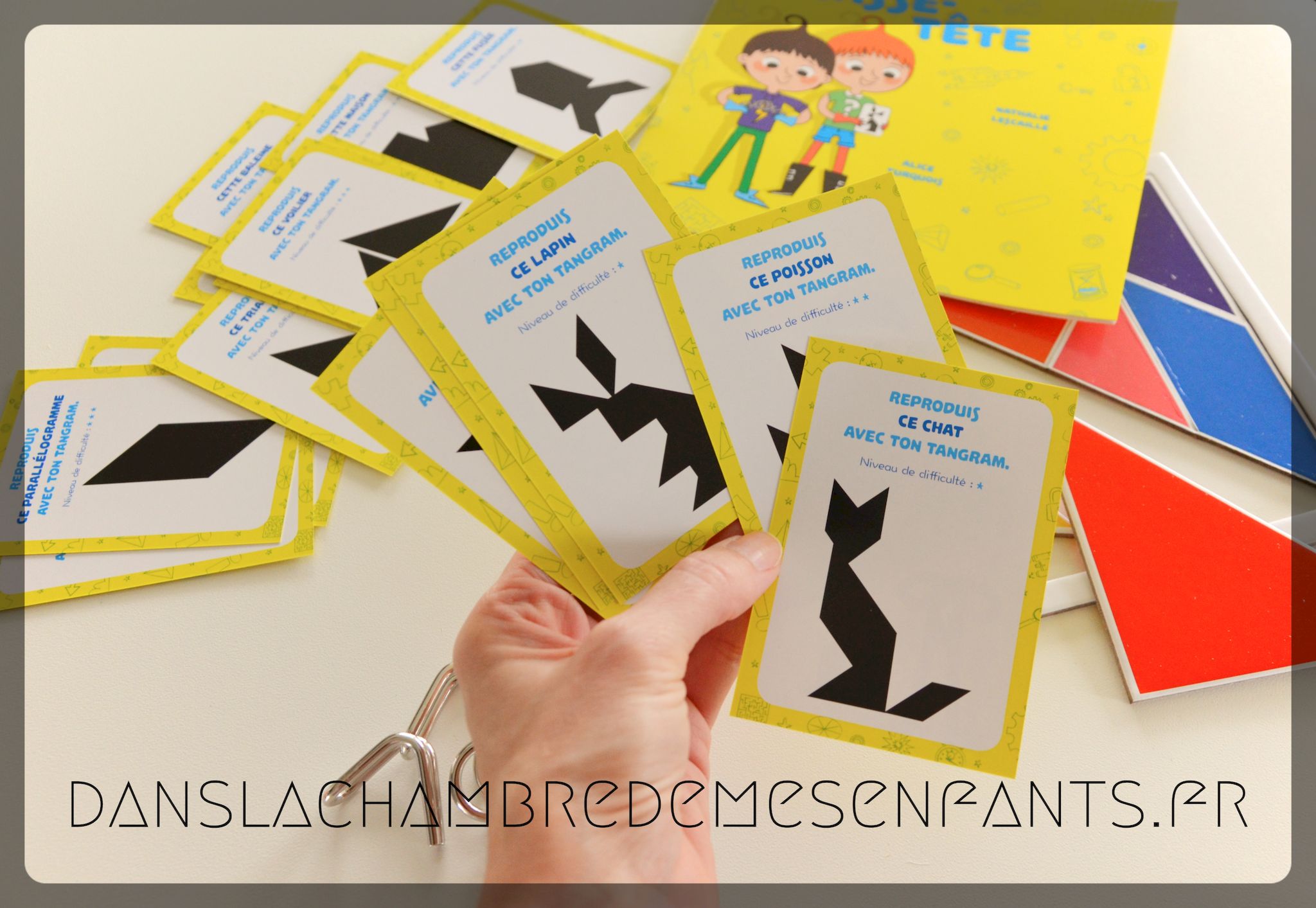 Le jeu de tangram est accompagné de cartes comportant des formes à reproduire, selon 3 niveaux de difficulté. Les jeux se partagent facilement sans besoin de montage de matériel et on y prend vraiment plaisir, pour notre part en famille après un repas. Ils peuvent également être agréables (et pratiques) pour s’amuser durant le trajet des vacances.