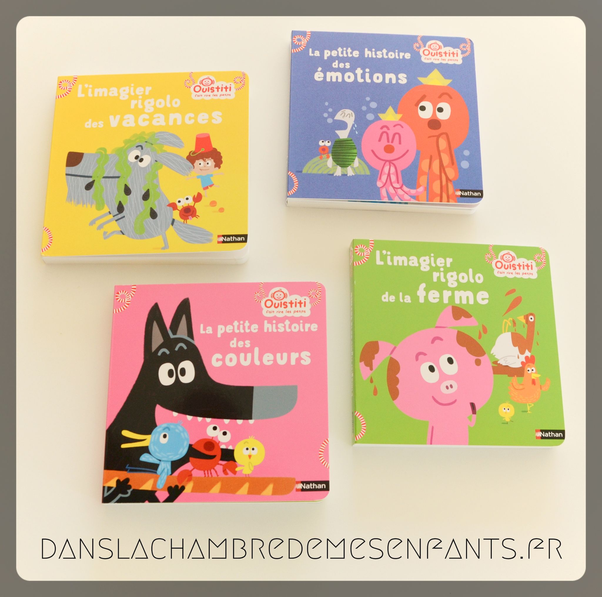 « L’imagier rigolo des vacances » – « La petit histoire des émotions » – « La petite histoire des couleurs » – « L’imagier rigolo de la ferme » (Ouistiti fait rire les petits)