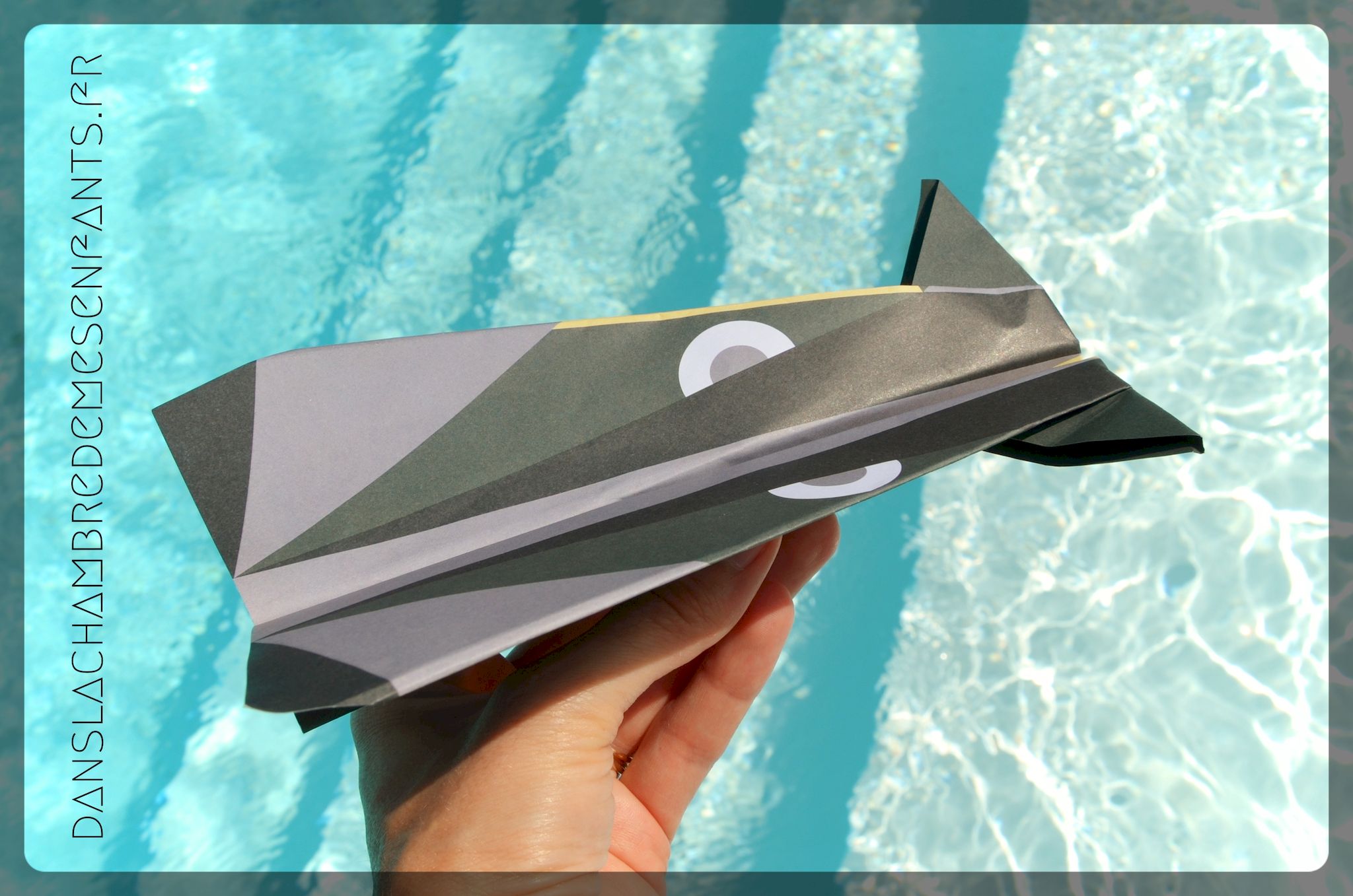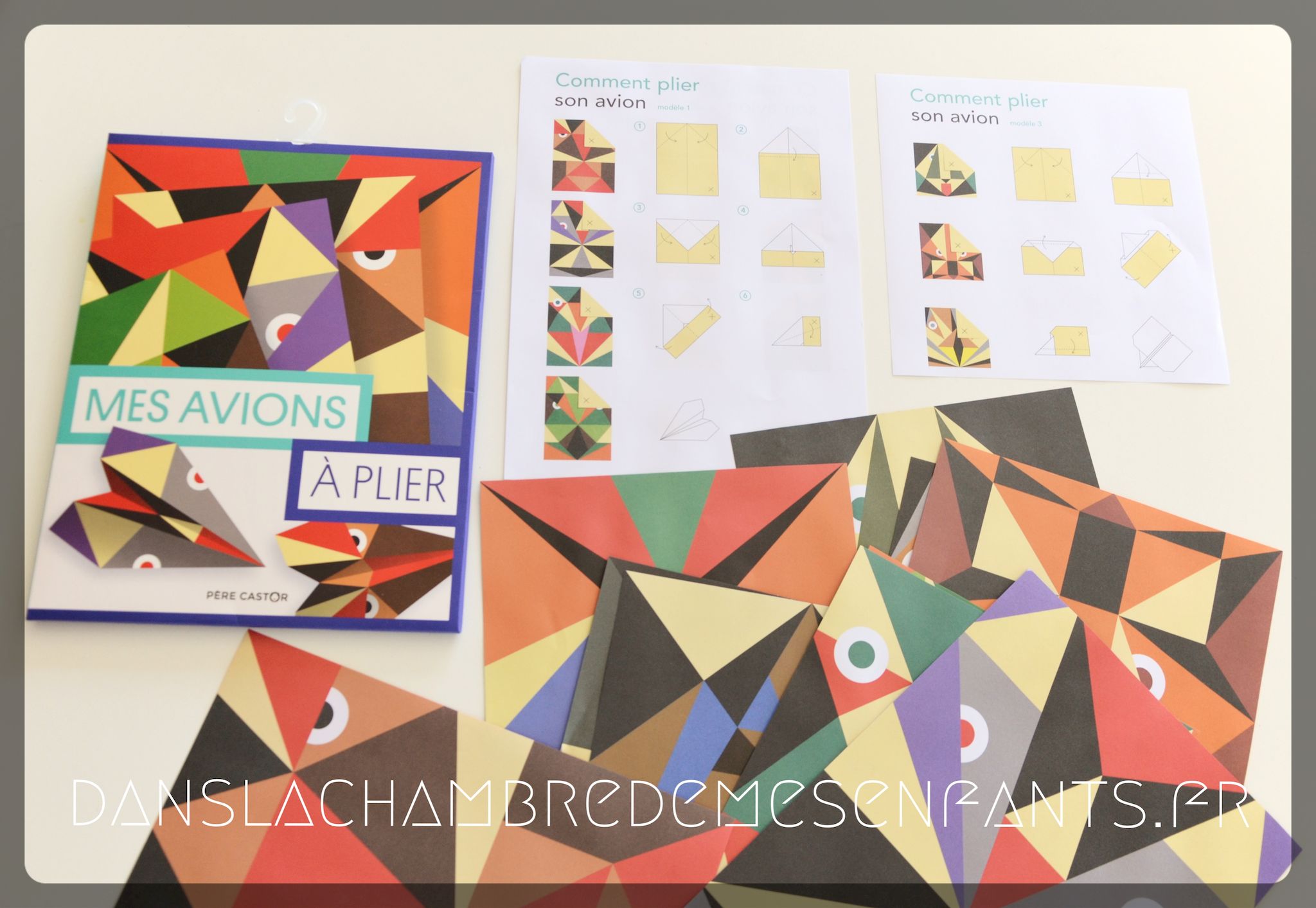 L’avis des enfants : Alex, 7 ans, souhaitait justement réaliser de nouveau des avions en papier et le visuel de ceux-ci l’a intéressé. J’ai été surprise de le voir s’investir seul dans le jeu de pliage. Je suis intervenue pour soutenir son effort et lui proposer de faire les plis à l’aide d’une règle pour plus de facilité et une meilleure réalisation (placer la règle le long du pli à faire et marquer ce dernier en faisant glisser le doigt le long de la règle). Son 1er avion (en photo) n’est pas parfait mais il a le mérite de bien voler. La variété des modèles a été déterminant pour lui qui a apprécié de pouvoir faire voler les avions différemment, notamment pour des courses improvisées.