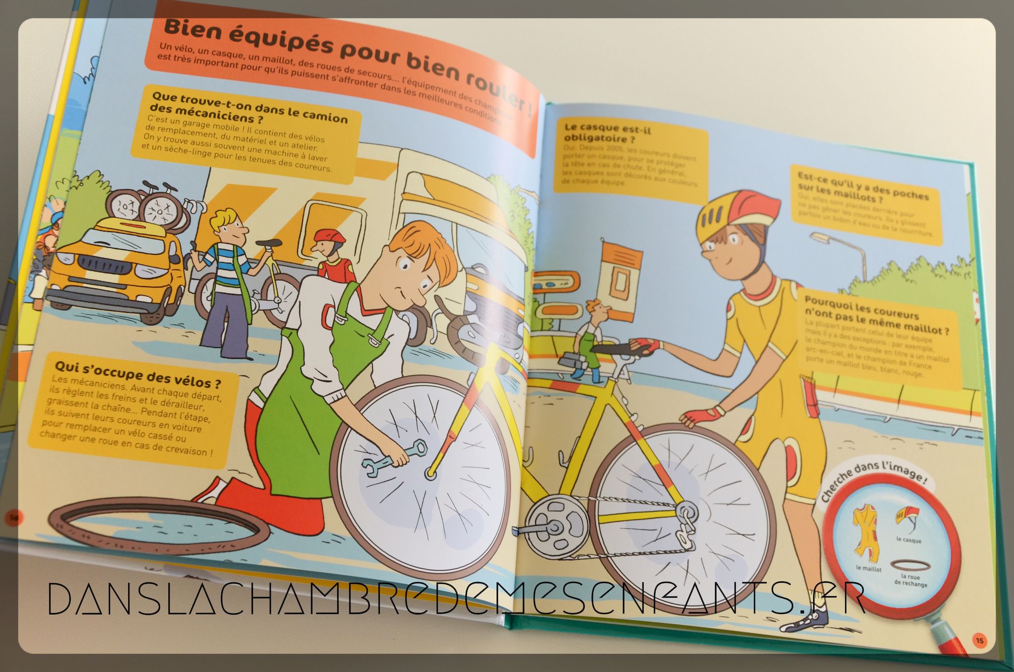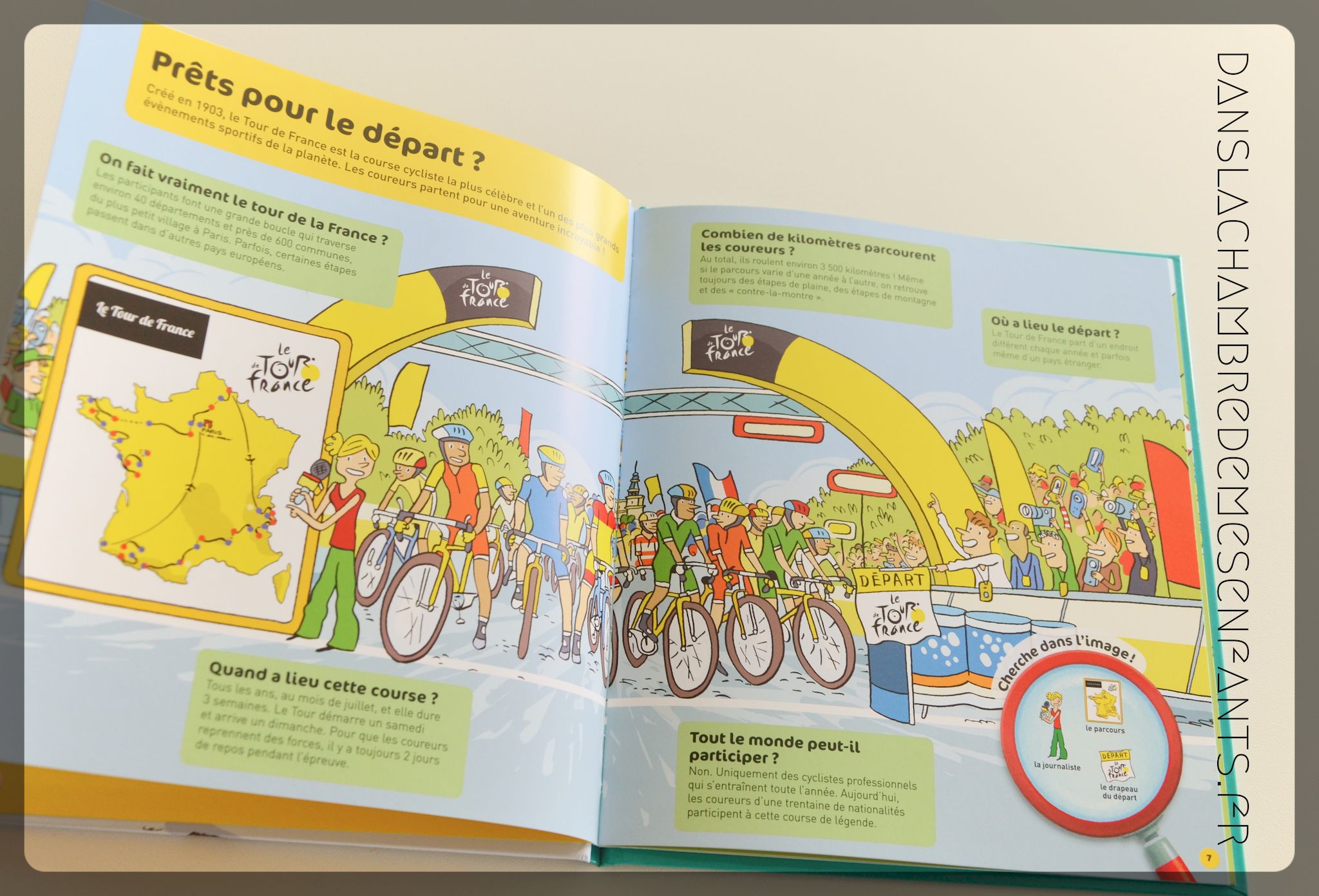 L’avis des enfants : Alex n’a pas voulu lire l’ouvrage. Peu d’activités sportives retiennent son attention et le Tour de France ne l’intéresse pas particulièrement. Cependant, il a été partant pour les jeux de cherche et trouve.