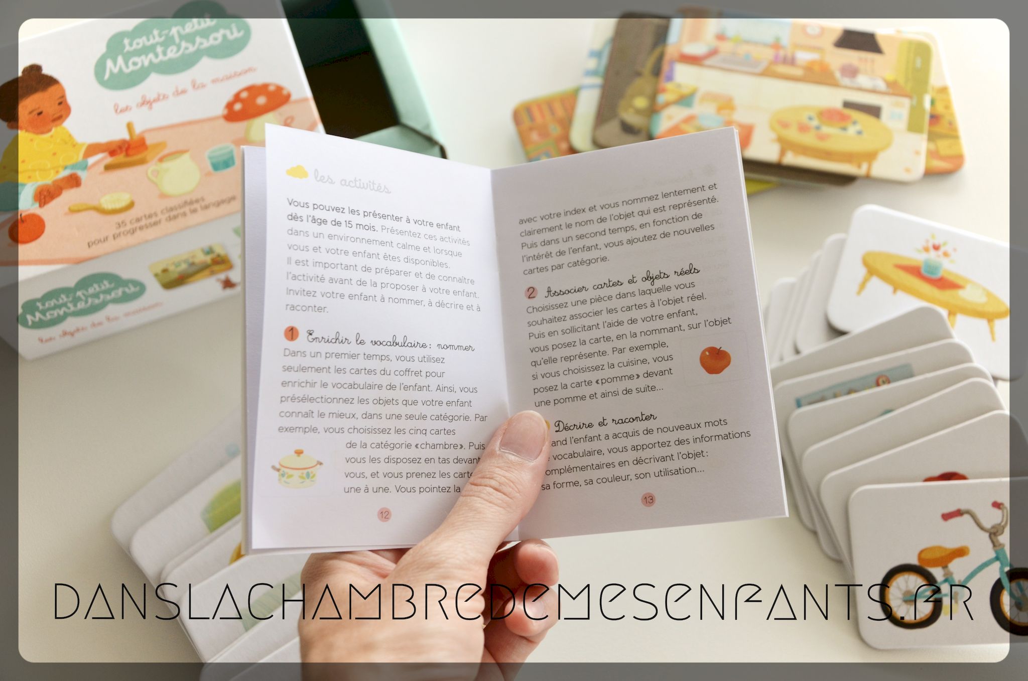 Ce coffret de qualité comprend un jeu de cartes cartonnées et illustrées en couleurs pour donner une autre dimension au principe de l’imagier. Le principe des cartes à manipuler est très apprécié des enfants et il permet ici de réaliser plusieurs activités, proposées dans un livret pour les parents (jeu pour nommer, associer les cartes et les objets réels, décrire et raconter, associer les cartes entre elles).
