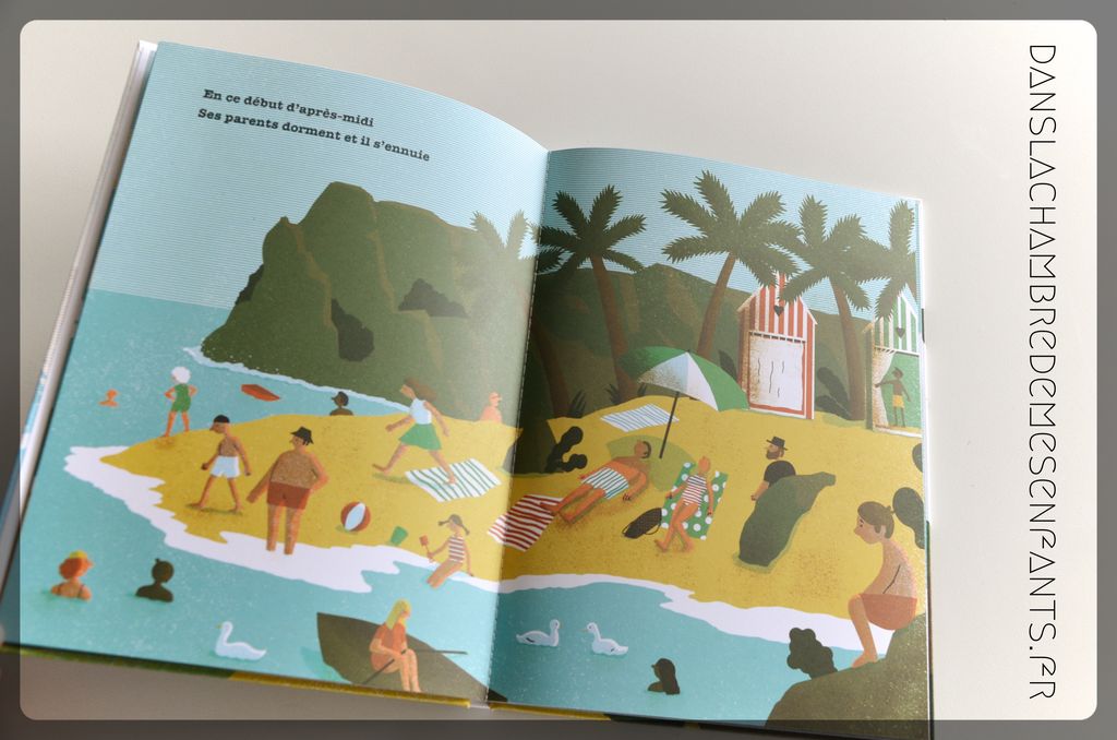 Cet album, accessible dès 4 ans, marque, dès la couverture, un caractère un peu à part. Le style graphique est déjà une proposition avec un panel de couleurs restreint. C’est agréable et intemporel, parfait pour nous faire rentrer, nous-mêmes, dans ce livre !