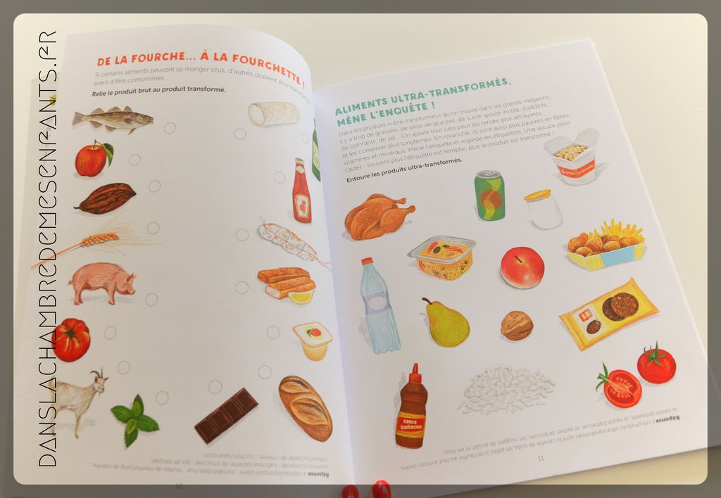 L’avis des enfants : Alex, 8 ans, a lui-même sélectionné ces ouvrages : le 1er pour s’intéresser à la nature et aux insectes et le 2ème pour renforcer l’intérêt qu’il partage avec son père sur la nature de ce que l’on mange, le choix des choses saines et bonnes. Il a beaucoup aimé la partie documentée mais il a regretté de ne pas avoir pu observer beaucoup de ces espèces pas de cercope sanguinolente ! Pourtant il l’intrigue ! et les activités ne l’ont pas beaucoup intéressé. Cela confirme son affinité pour les documentaires « pures » ! Le cahier sur l’alimentation l’a intéressé car ciblé sur le sujet du « bien manger » à travers de courtes activités. Il n’a d’ailleurs pas manqué de nous rappeler certains passages de son cahier… 🙂