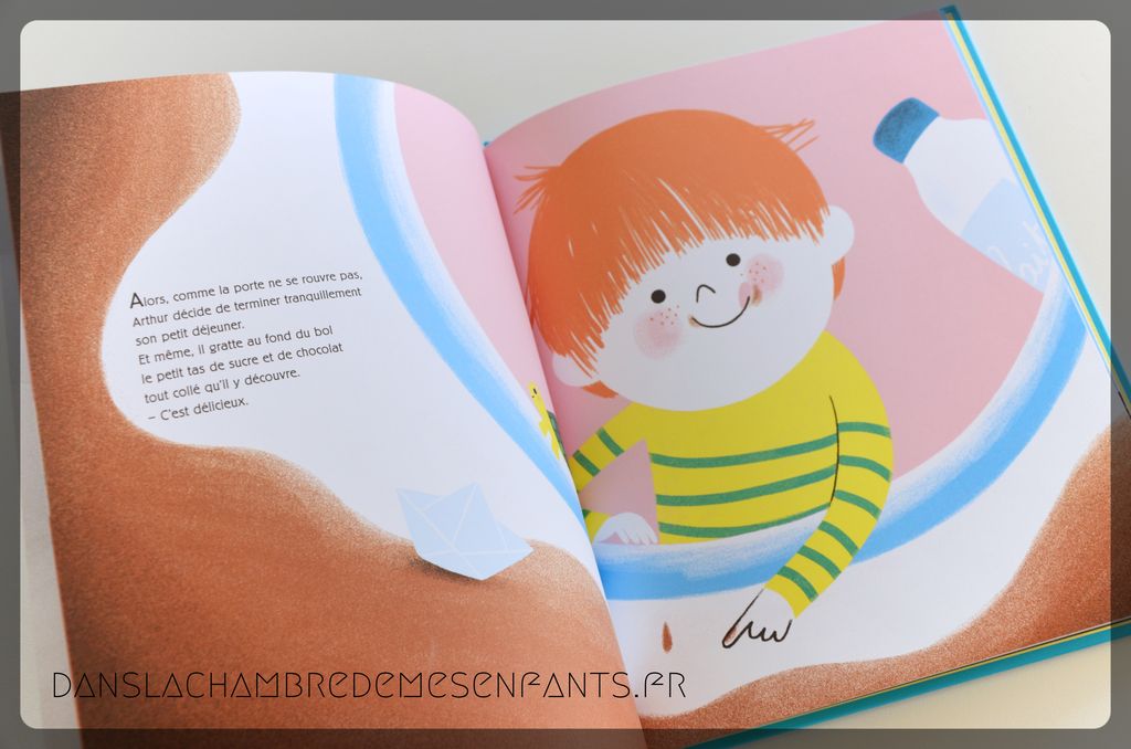 Voilà un sujet que l’on connait tous un peu trop bien et cet album l’aborde de façon simple et positive, à travers l’histoire d’Arthur. Ce jeune garçon est pressé par les adultes dès le saut du lit. Ce rythme est tellement soutenu qu’un beau matin sa mère en l’oublie. Il profite alors de ce calme pour prendre son temps : déguster son petit-déjeuner en s’attardant sur les saveurs, découvrir son entourage en allant doucement vers l’école, profiter de chaque chose. Son arrivée est d’autant plus agréable que tout le monde est rassuré de le retrouver. C’est aussi l’occasion de se rendre compte qu’il a acquis une certaine autonomie, tout n’est finalement qu’une question de temps pour réaliser les choses de la journée.