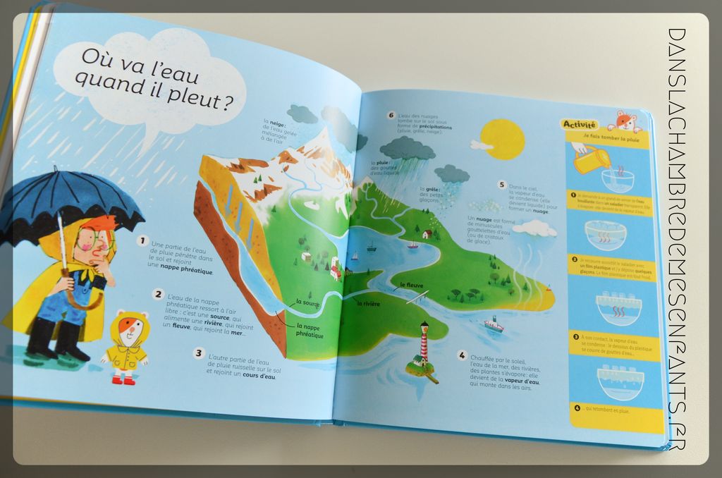 - l’eau : « C’est quoi, l’eau ? », « Comment fait-on un glaçon ? », « Où va l’eau quand il pleut ? »…