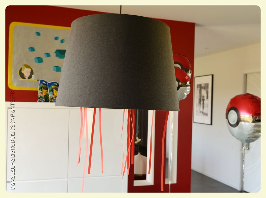 Egalement, pour conserver l’univers japonisant, j’ai accroché des bandelettes de papier au luminaire sur lesquels les invités ont écrit un petit mot à l’attention d’Alex. Cette attention lui a particulièrement plu et il aime les relire de temps à temps.