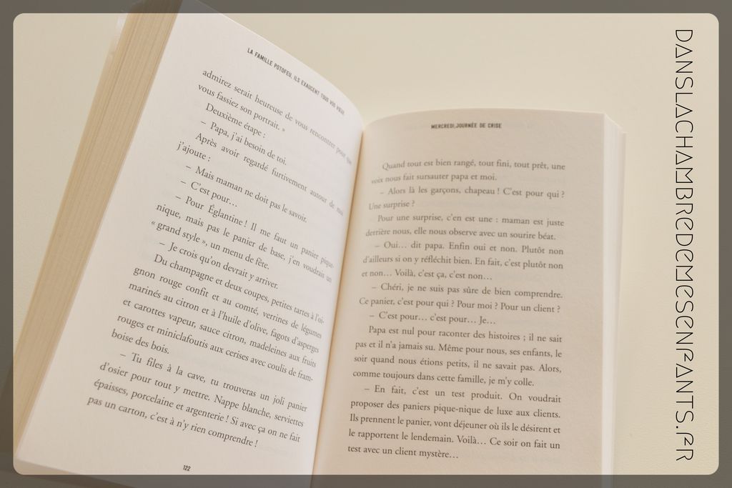 Ce roman propose de mieux connaître une famille a priori comme les autres. On pense que la grande aventure tient dans le changement de vie décidé par Matthieu Potofeu, le père. Il faut dire que passer de la vie de bûcheron à celle de restaurateur parisien, c’est un sacré virage surtout lorsque l’on emmène toute sa famille avec soi. Mais, derrière l’activité de ces Potofeu, se cache une activité peu ordinaire, si secrète que même Mme Potofeu, mère, n’en connaît pas l’existence. Tout commence par une liste, ou plutôt des listes. On en a tous pour les choses à faire, notamment, mais celles-ci viennent d’inconnus qui ont un vœu à exhausser et c’est à ce moment là qu’interviennent les Potofeu, en toute discrétion.