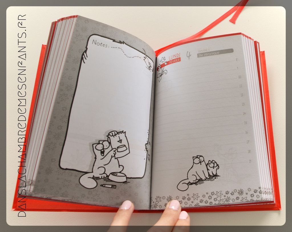 C’est un format classique avec la bonne bouille du célèbre Simon’s cat qui plait à un large public et ne manque pas d’humour. Ce format accompagne bien les enfants à partir de 7 ans, ainsi que les collégiens. En tant que mère, je suis heureuse qu’il soit complet tout en ayant un visuel simple, suffisant, et pratique grâce à sa couleur qui permet de le repérer facilement dans le sac ou sur un bureau vite encombré. De même, les illustrations sont assez nombreuses pour plaire aux enfants sans être trop nombreuses non plus pour les distraire en classe ça aussi, c’est du vécu !