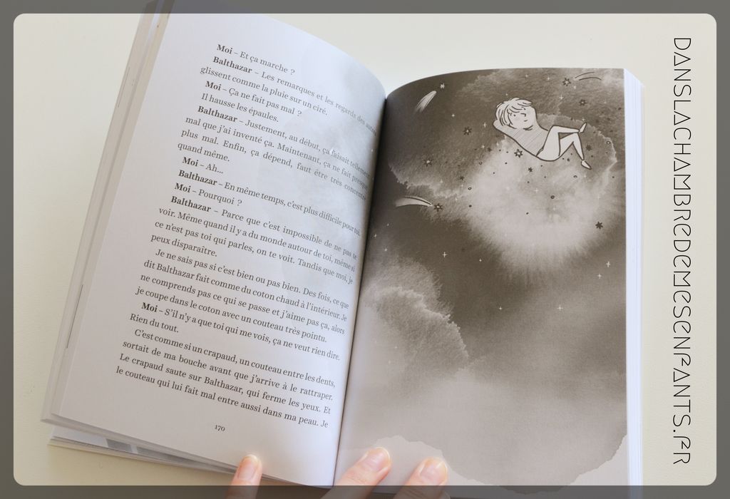 Cette jeune écolière de 9 ans change d’établissement scolaire du fait de son trouble et son premier jour d’école ne fait qu’accentuer son anxiété car elle y retrouve sa pire ennemie. C’est auprès d’Arthur, son frère éloigné pour ses études, qu’elle trouve une façon de s’exprimer. Il l’encourage à écrire sans filtre et il accueille positivement tous ses entrains sans manquer de la reprendre en cas d’erreurs, ce qui permet aussi une explication pour le lecteur. Les voilà partis pour une année, finissant à sa façon : sans se soucier de la différence et avec la curiosité des nouveautés du quotidien.
