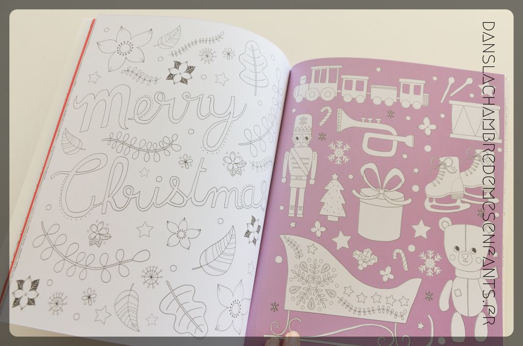 Le cahier se décline sous un format allégé, sur Noël. Bonjour rennes, Père Noël, tasses de chocolat chaud, petits gâteaux, couronnes de houe… C’est un titre bien de saison et ça nous plait ! On y retrouve tout de même la petite licorne, ce que ma petite Emi à très vite remarqué avec beaucoup de plaisir.