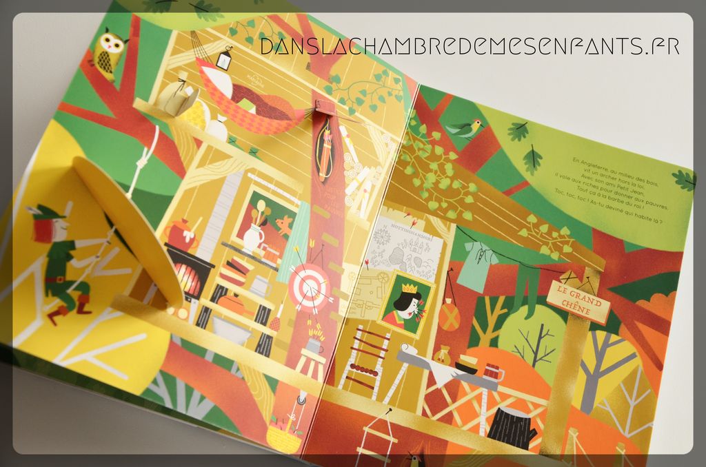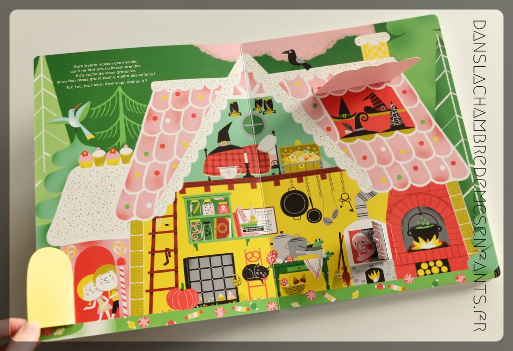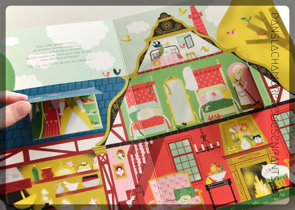 Le principe est de découvrir une maison par scène (celles de Peau d’âne, de Fée clochette, de Cendrillon, de Robin des bois…) et de jouer le jeu en répondant à la question posée systématiquement en fin d’introduction : « Toc, toc, toc ! As-tu deviné qui habite là ? ». Pour s’amuser davantage, de multiples rabats (portes, buissons, toitures…) sont à soulever, encore faut-il les trouver ! Les enfants sont si observateurs et tant amusés par ce type de jeu, qu’ils partiront facilement à la recherche de ces petites cachettes.